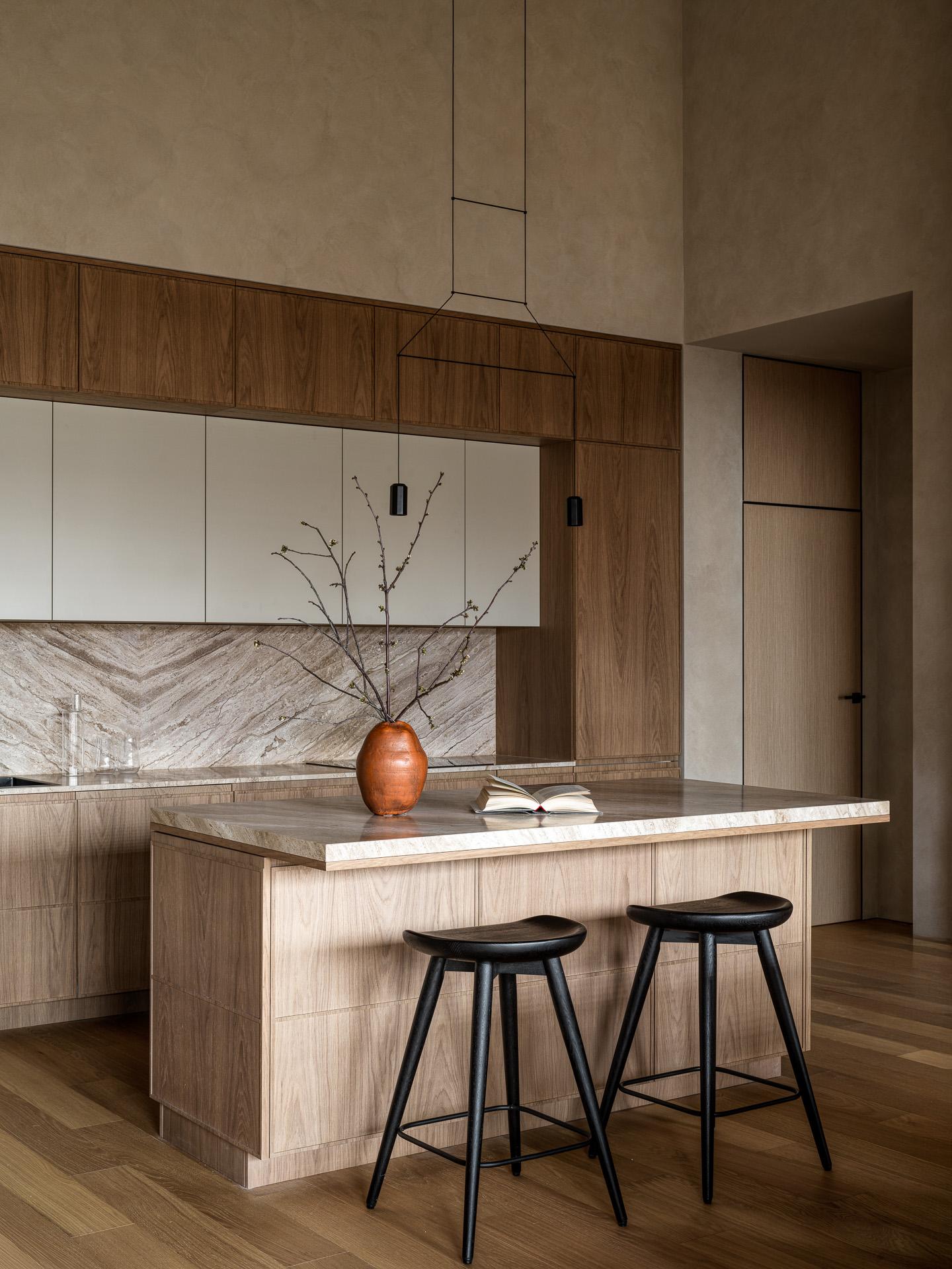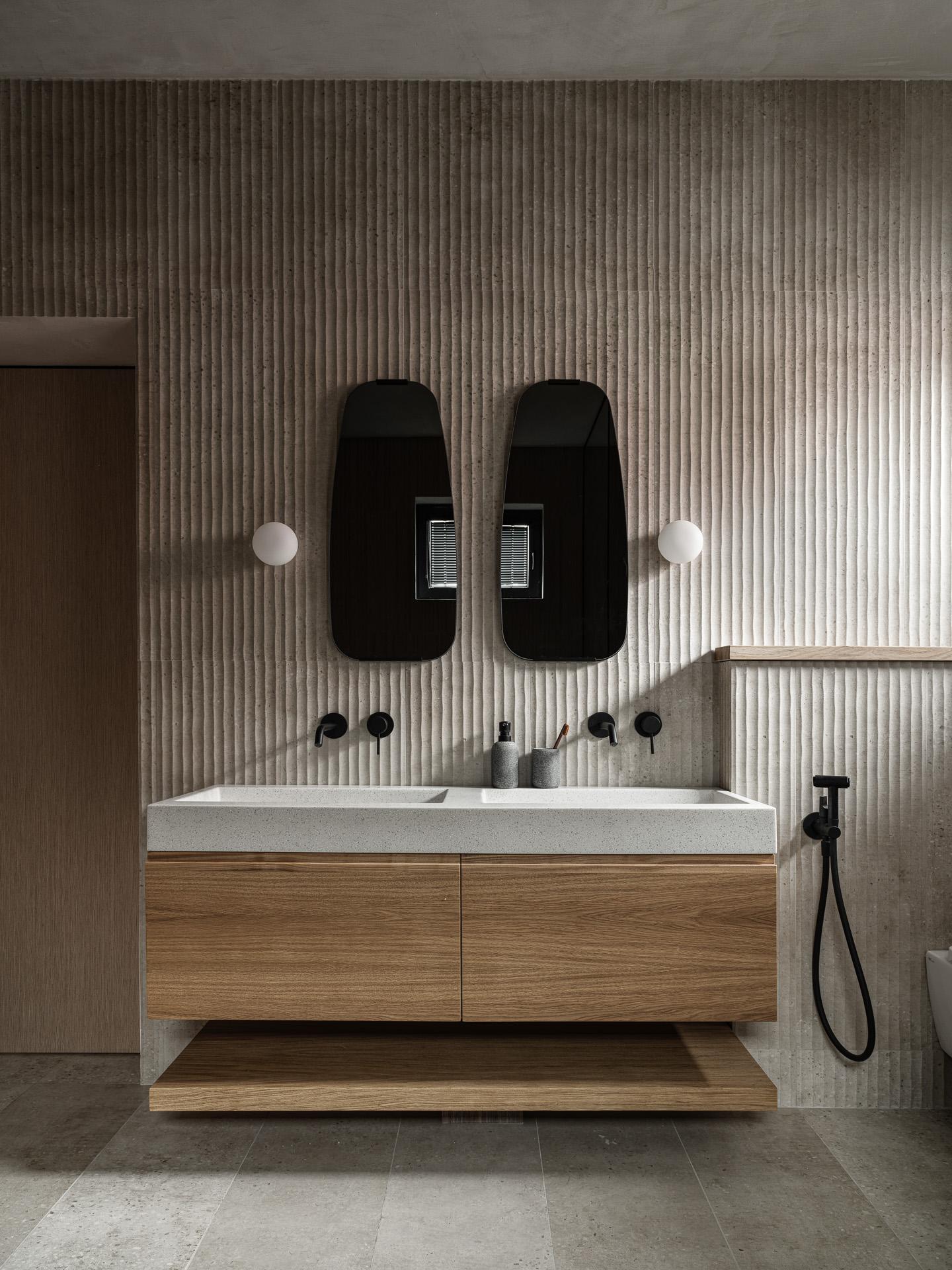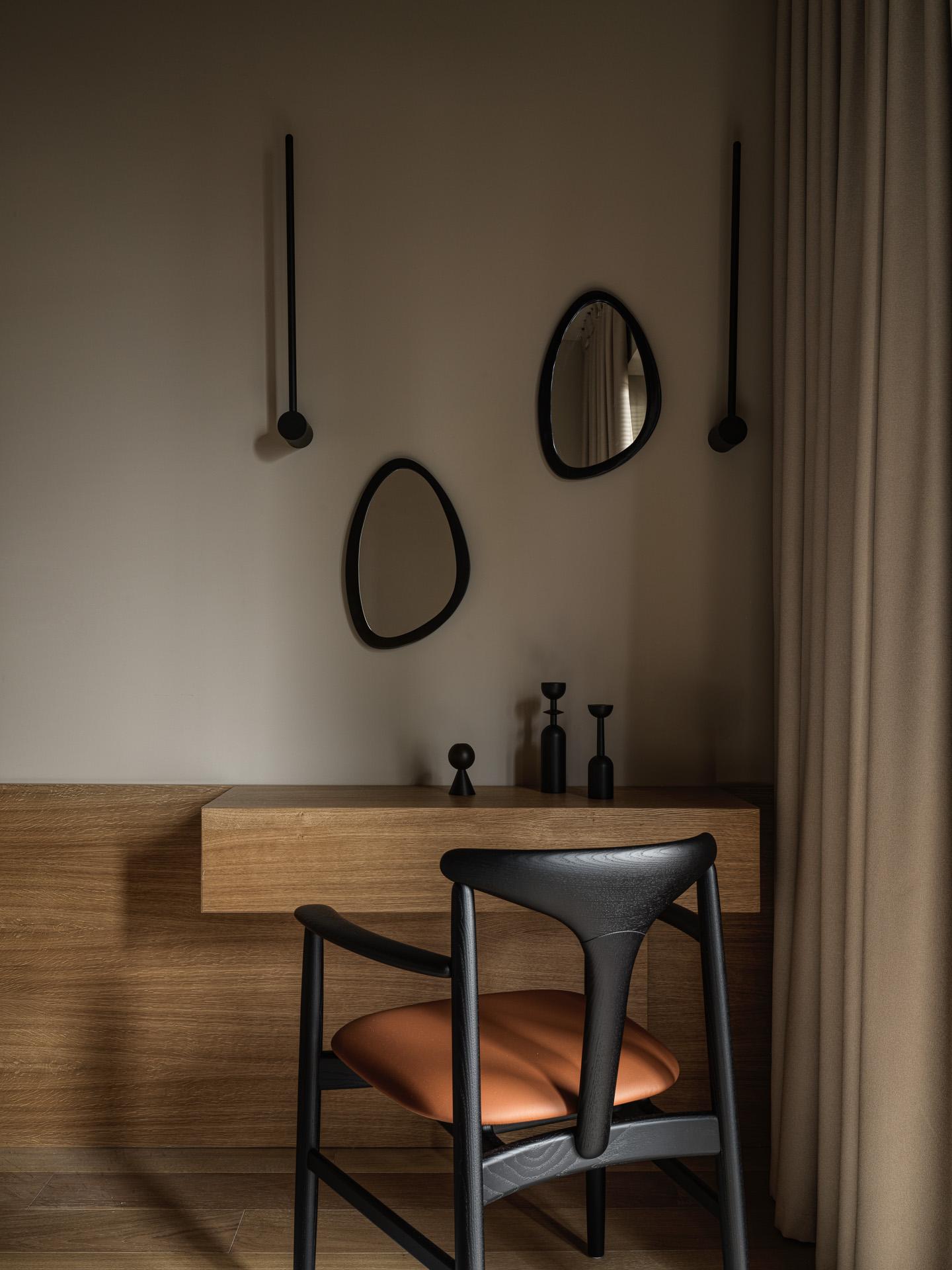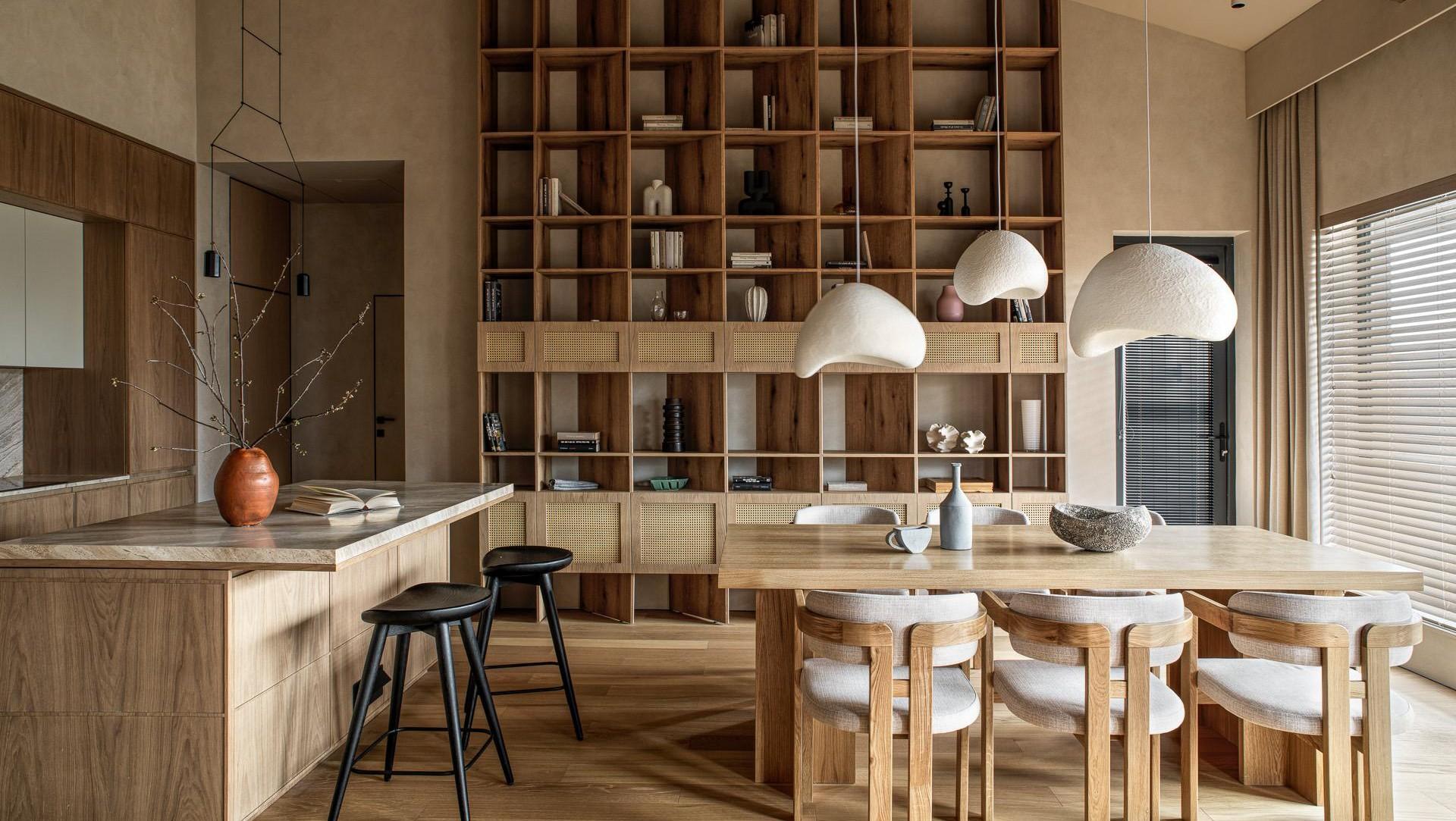 Спокойствие, естественность и мягкие формы — вот главные пожелания клиентов. Мы опирались на эстетику стиля джапанди — сочетание японской сдержанности и скандинавского уюта. Это выражается в мягких линиях, натуральных материалах и продуманной простоте. Важную роль в интерьере играет теплая нейтральная палитра: молочные, древесные, светло-серые и песочные оттенки. Пространство наполнено воздухом, выглядит очень объемно — без ярких контрастов, но с глубиной, фактурой и мягкой геометрией.