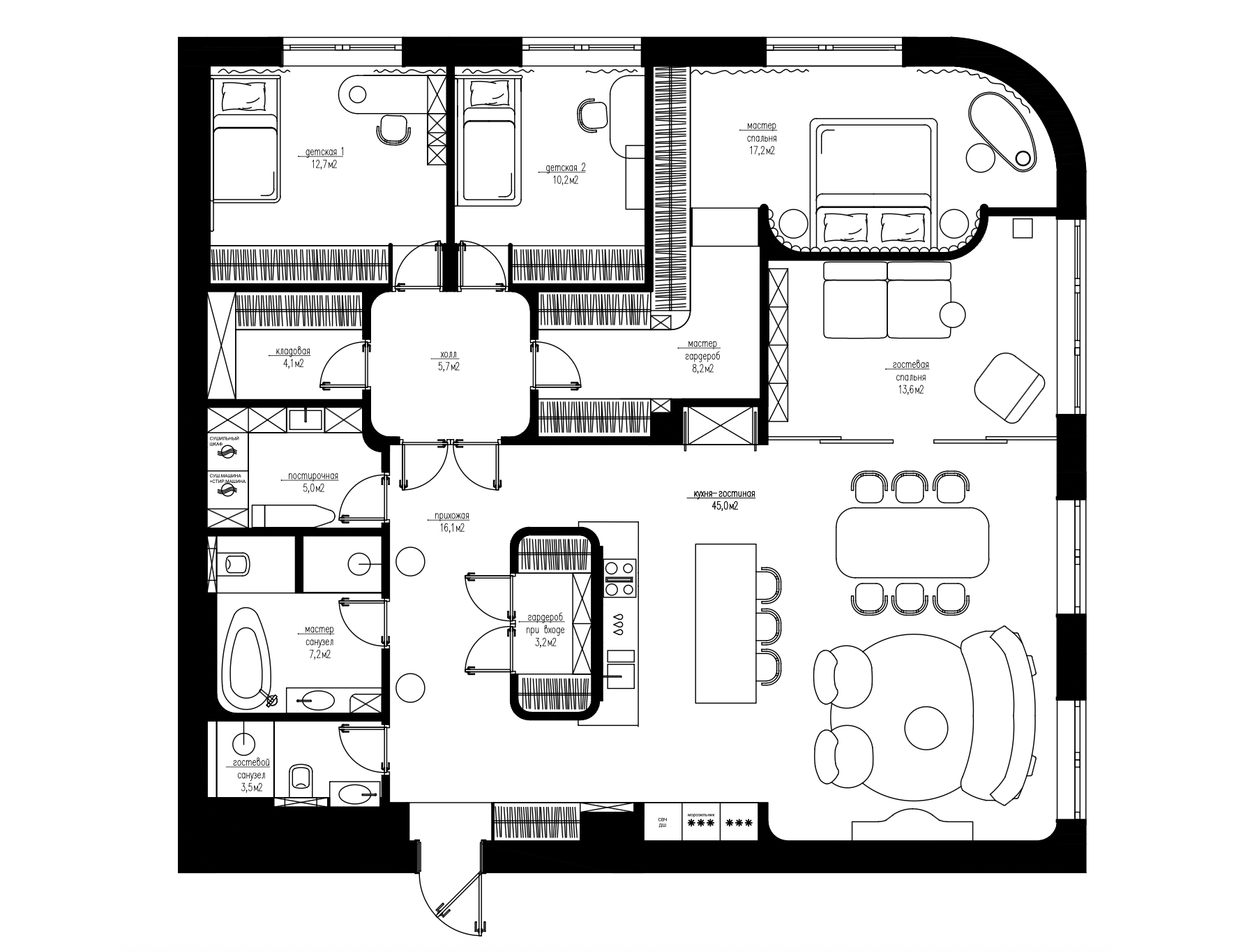 План квартиры 160 м² в Москве. Проект студии Belousova.Interior