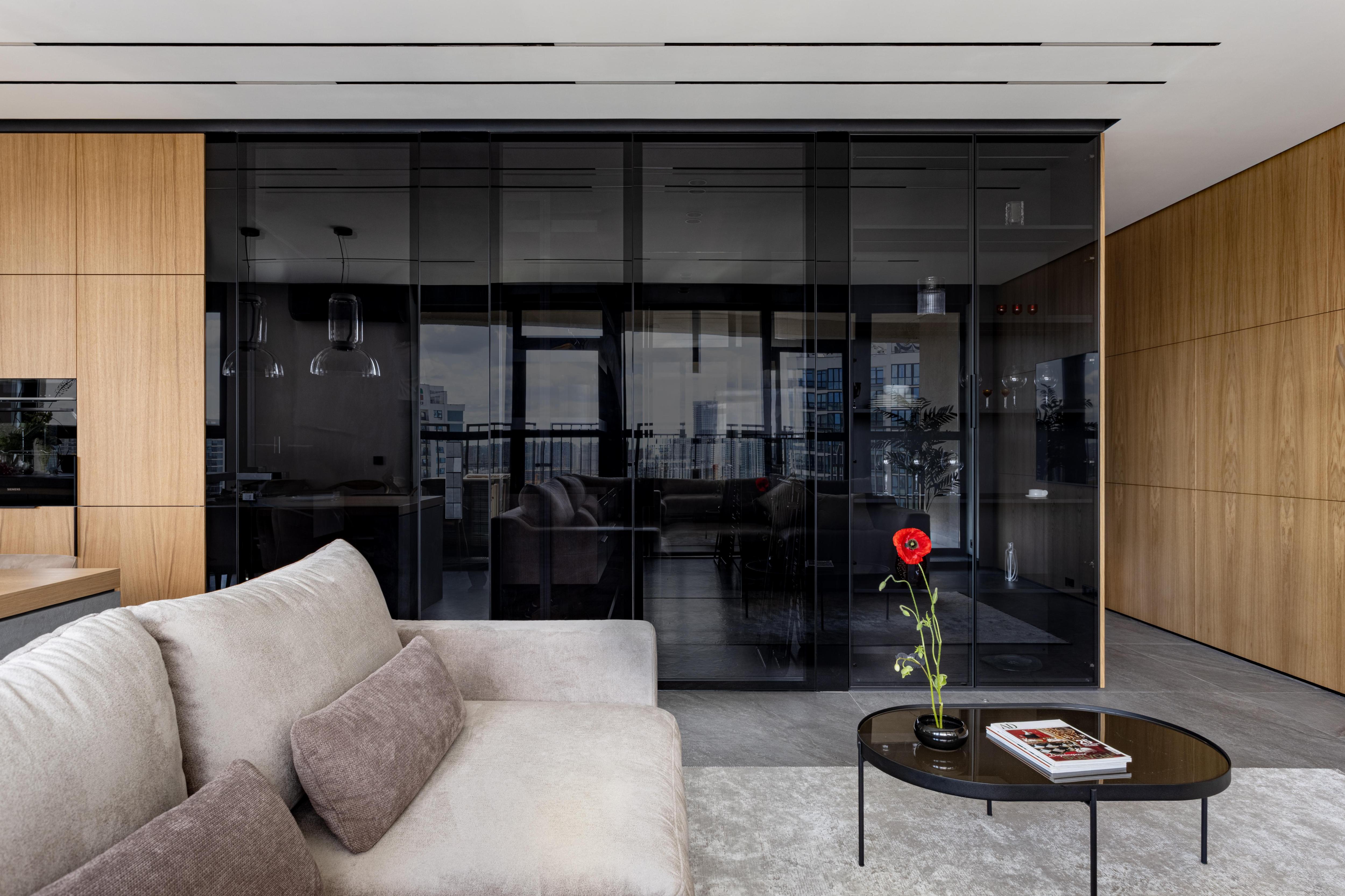 Стеклянная перегородка с дверями, Lazio. Столик NoNo Table, Audo Copenhagen. Ковер, Ковер BM Home.
