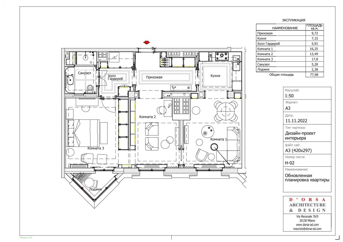 План квартиры 78 кв. м. Проект Елизаветы Шмитковой и Маурицио Д’Орса.