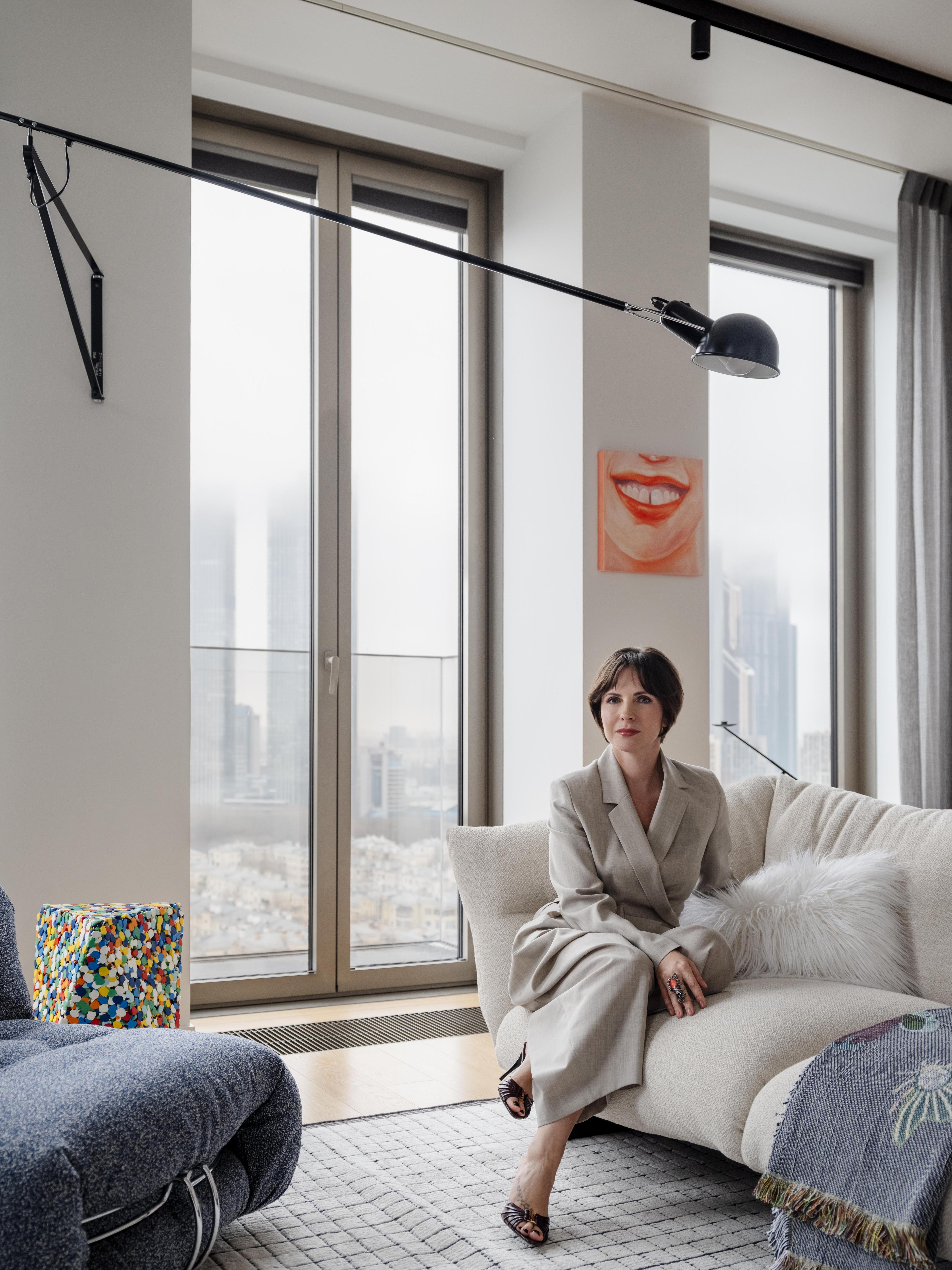 Заказчица — молодая и активная девушка, интересуется модой и искусством. Она точно понимала, что хочет смелый интерьер, не как у всех, где сочетаются совершенно разные предметы и стили. Важно было привнести иронию, экспериментов и бунта. Так в интерьере появилась не только современная, но и культовая дизайнерская мебель.