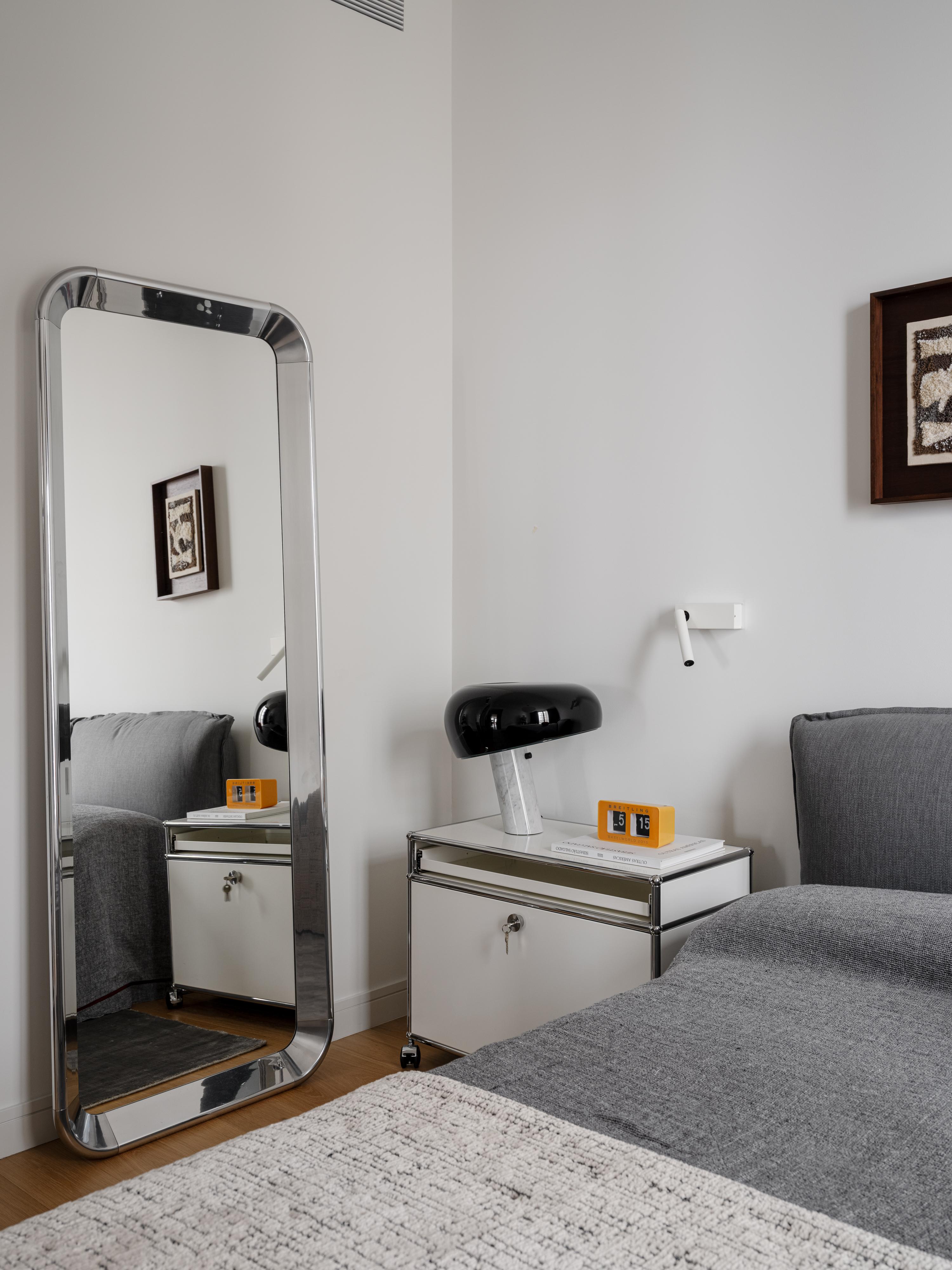 Зеркало, дизайн Наоты Фукасава, Magis, GK Concept. Тумба, USM, GK Concept. Настольная лампа Snoopy, дизайн Аккиле и Пьер Джакомо Кастильони, Flos, GK Concept.
