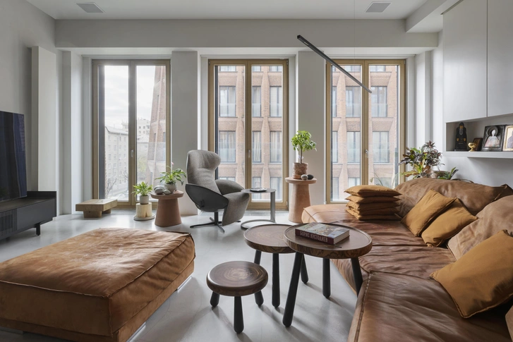 Наша квартира — это 4,5 спальни, 2 санузла и гостиная, совмещенная с кухней. 4,5 — потому что одна из детских комнат рассчитана сразу на двоих детей. Самое сложное и одновременно необычное в нашей квартире — ее круглая форма, поэтому первым и главным вызовом для меня стала планировка помещений. Нужно было спроектировать равноценные по площади и функциональные комнаты для четверых детей, мастер-спальню и общую зону.
