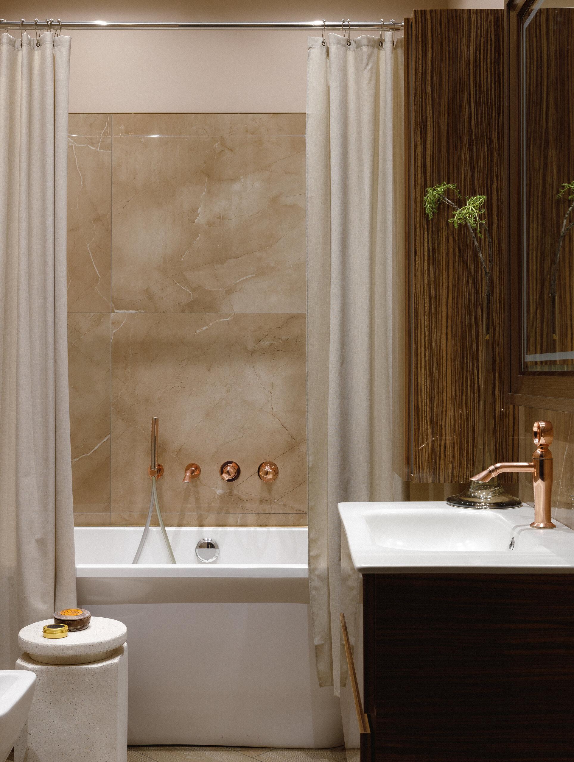 Мы опирались на саму атмосферу дома Шехтеля — игру света, изящество линий, историческую глубину. В интерьере это проявилось через большое количество зеркал, которые расширяют пространство и через мягкую световую драматургию — от естественного солнца до камерных торшеров. Текстуры и фактуры мы подбирали так, чтобы они не спорили, а дополняли друг друга: дерево с металлом, стекло с тканью, восточные мотивы с европейской классикой.