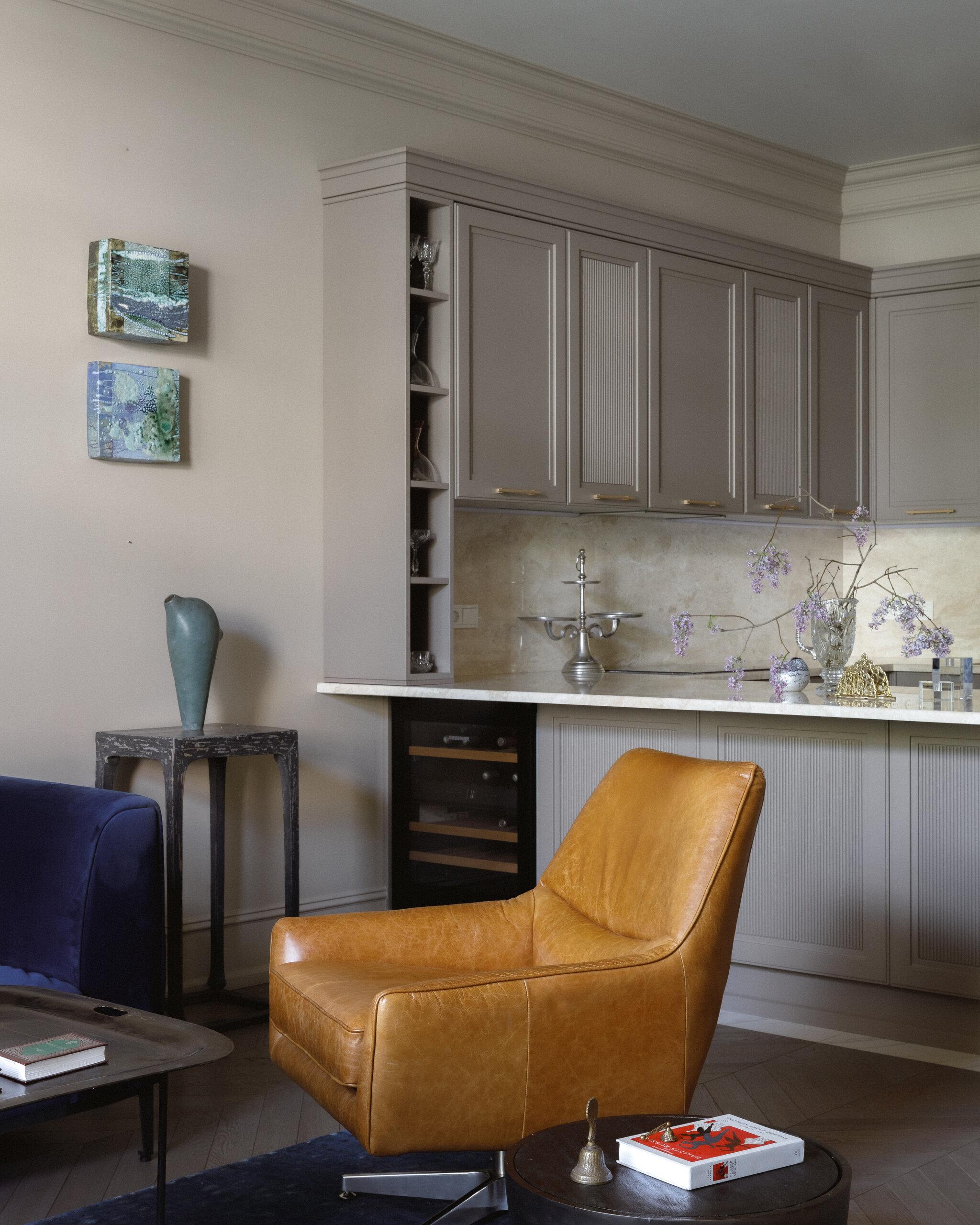 Хозяйка квартиры — стюардесса, человек легкий, свободный и в то же время невероятно организованный. Для нее дом должен был стать местом силы, противоположностью бесконечных аэропортов и гостиничных номеров. Она не хотела холодного минимализма и универсальных решений, напротив, каждая деталь должна была отражать ее личный опыт и воспоминания из путешествий.