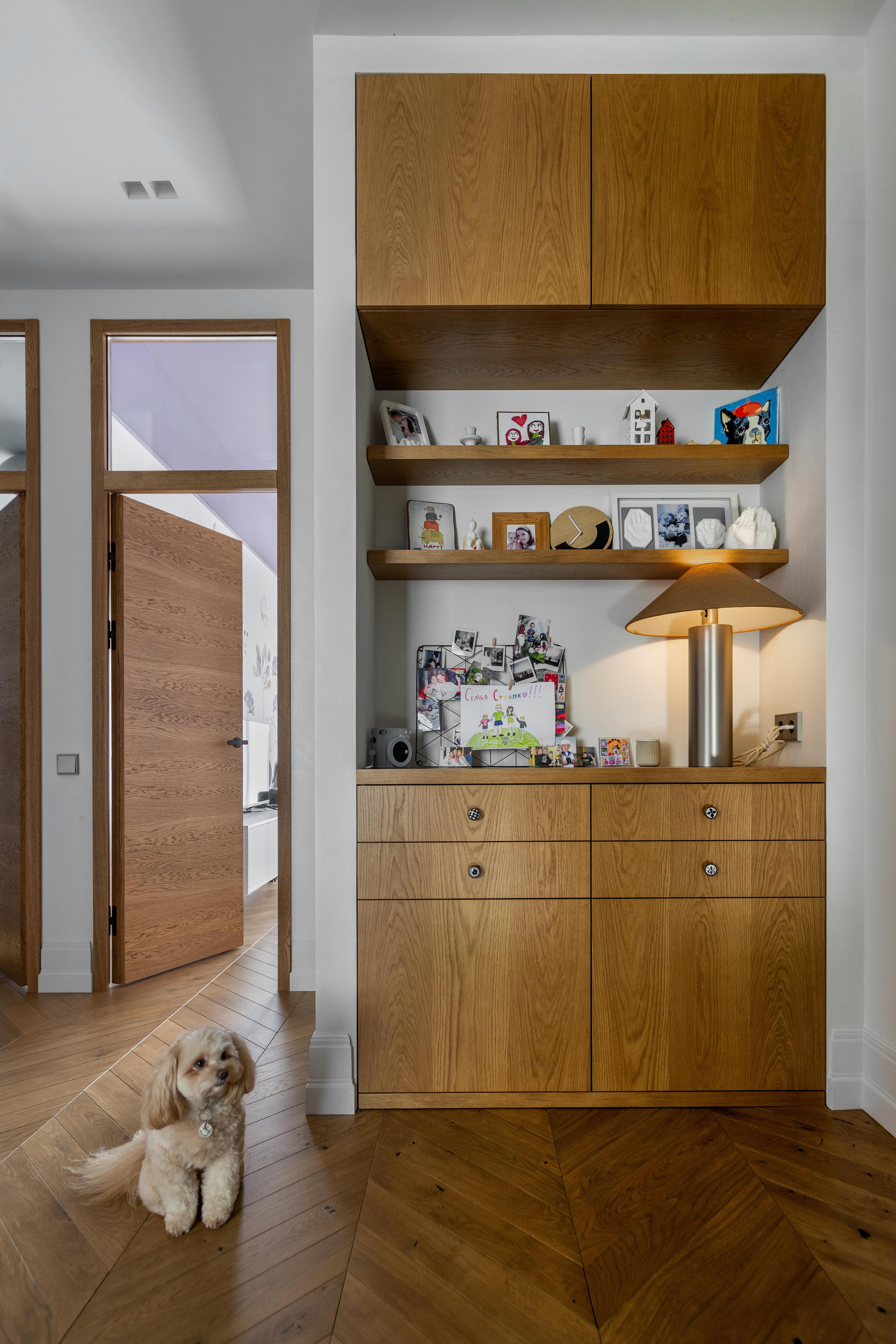 У всех в семье есть такие вещи, которые вызывают особый трепет — детские рисунки, поделки, фото, магнитики и т. д. У нас, разумеется, они тоже есть — не знаю, почему, но я не очень люблю, когда они на виду. Это что-то сокровенное, только мое, поэтому я не ставлю их в гостиной и других местах, открытых чужим глазам. Специально для этого в холле второго этажа появилась ниша со своеобразной экспозицией.