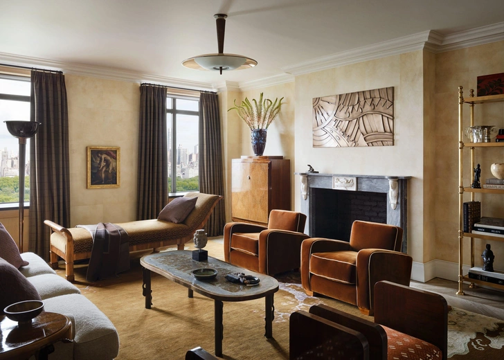 Когда дизайнер Нина Фармер начала работу над проектом для клиента, купившего квартиру в центре Нью-Йорка, со стилем определились сразу. Двухкомнатная резиденция с видом на Центральный парк находится в здании, которое считается памятником эпохи ар-деко, а владелица к тому же страстно коллекционирует предметы того времени. 90% мебели — антиквариат и винтаж, приобретенный хозяйкой в известных галереях: по словам Нины, «клиентка — настоящий коллекционер и мастер находить интересные вещи».