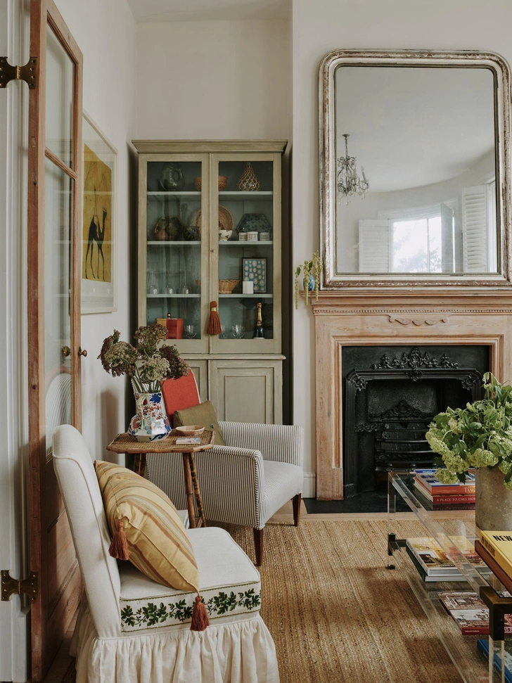 Дизайнер Салли Уилкинсон (Sally Wilkinson) переехала из Атланты в Лондон налегке: «Мы приехали буквально с парой чемоданов в руках, будучи уверенными, что это ненадолго. Нам не хотелось тащить с собой много вещей, чтобы спокойно купить себе все, что необходимо, здесь». Поискав варианты, она увидела квартиру на оживленной улице, заполненной ресторанами и галереями в «более молодой и оживленной части лондонского Челси». Жилье сразу понравилось ей своей «основой»: белыми стенами, большими окнами, высокими потолками и качественной отделкой. «Для меня это был чистый холст для творчества», — объясняет дизайнер.