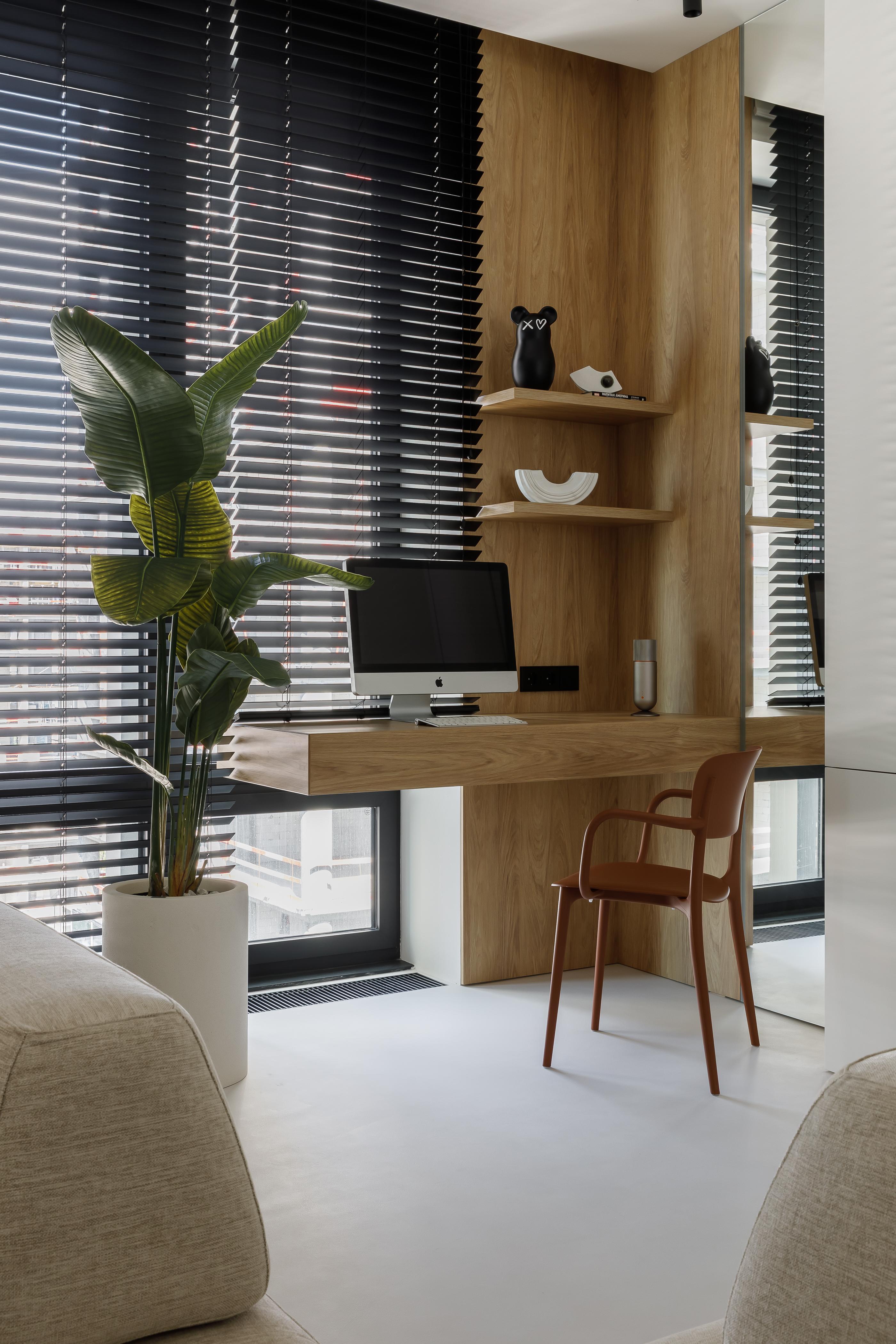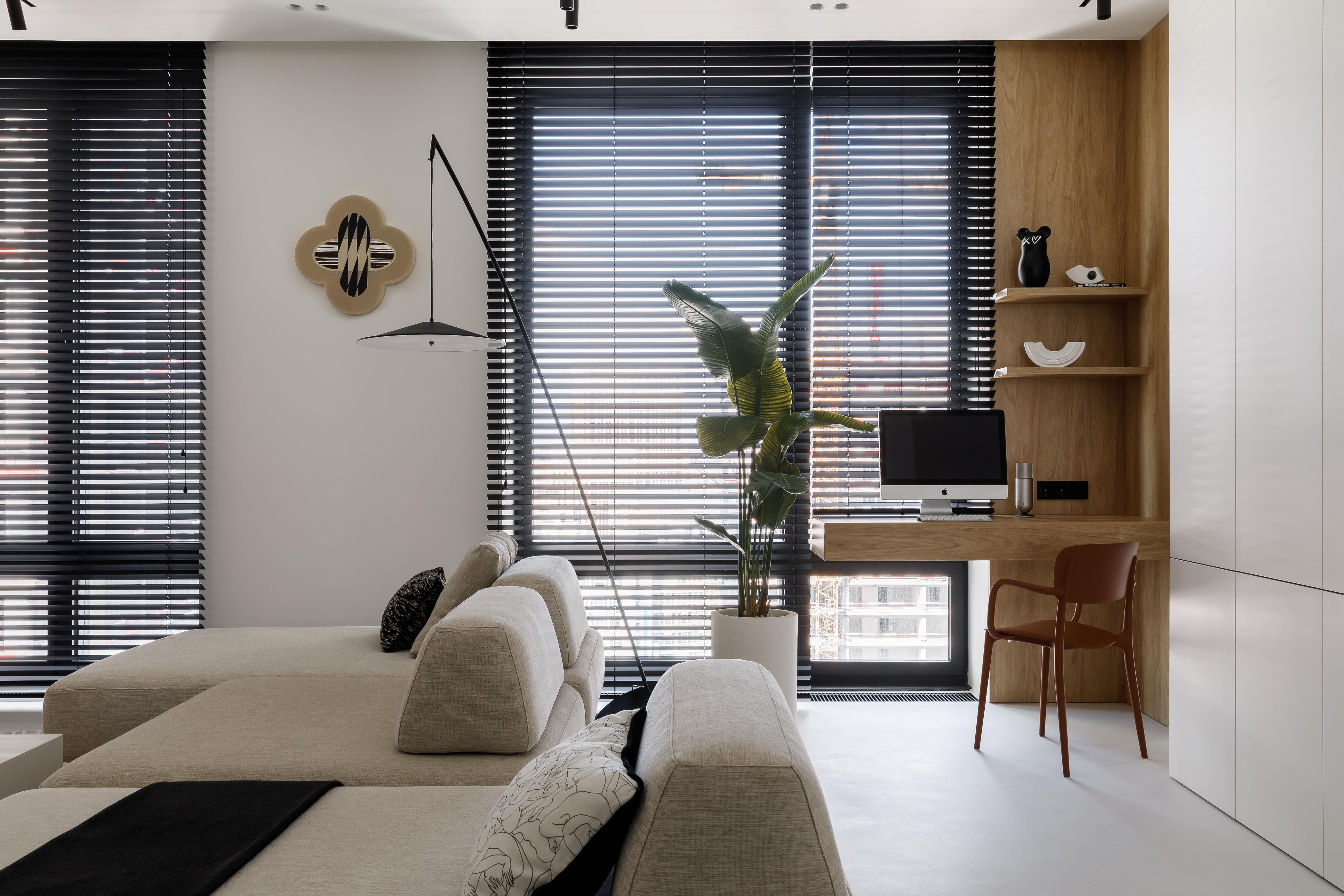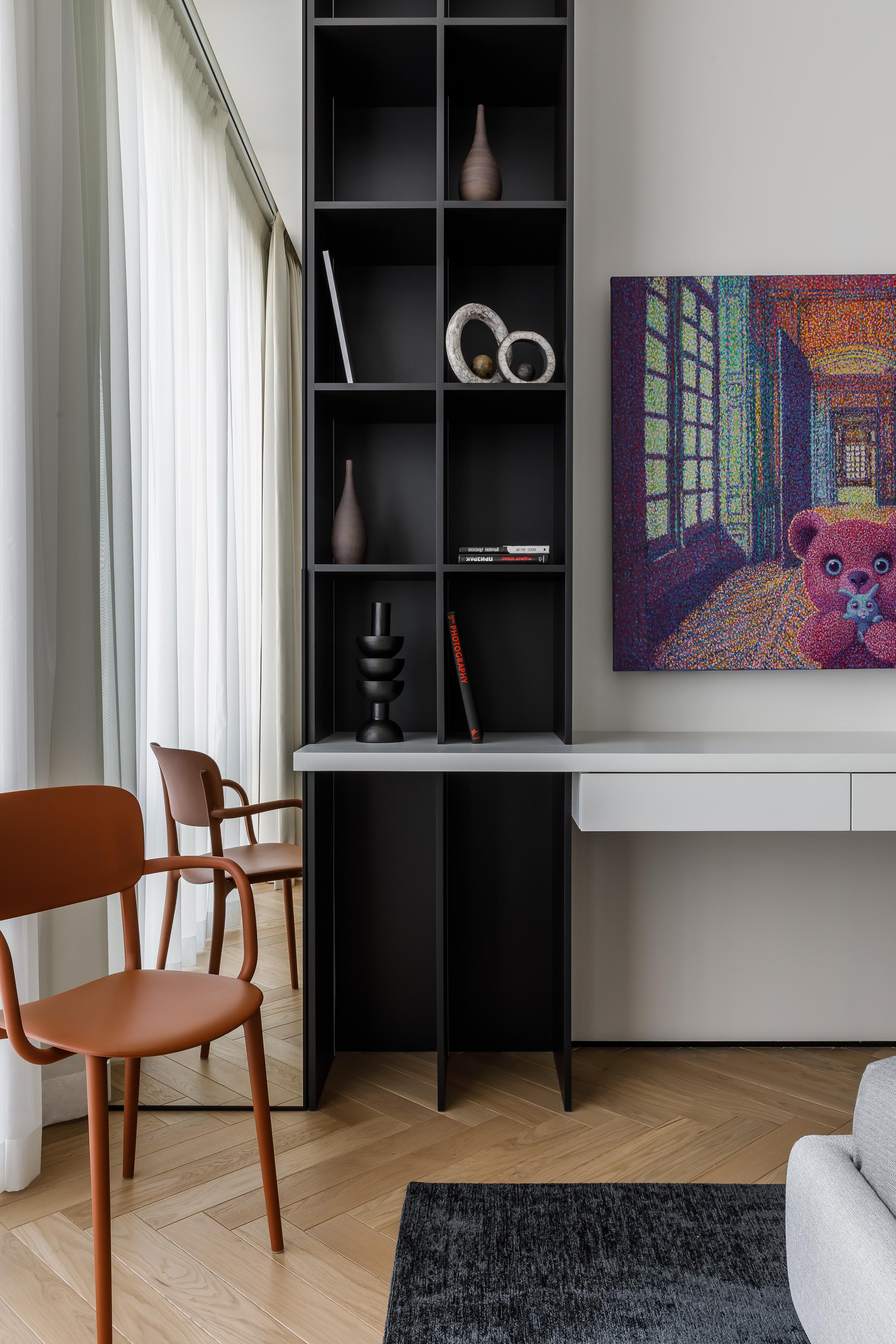 Кирилл — основатель и главный продюсер агентства Semin Agency, он строгий и собранный руководитель, но с друзьями — душа компании. До этого мы удачно реализовывали наши проекты для его друзей из блогерской сферы — так он узнал о нас и тоже обратился за проектом. Кирилл сразу нам сказал, что с ним будет сложно, так как он сам еще не до конца понимает, что ему нравится в интерьерах. Зато он точно знал, что по вечерам у него дома будут шумные вечеринки, а днем он захочет с удовольствием поработать из дома.
