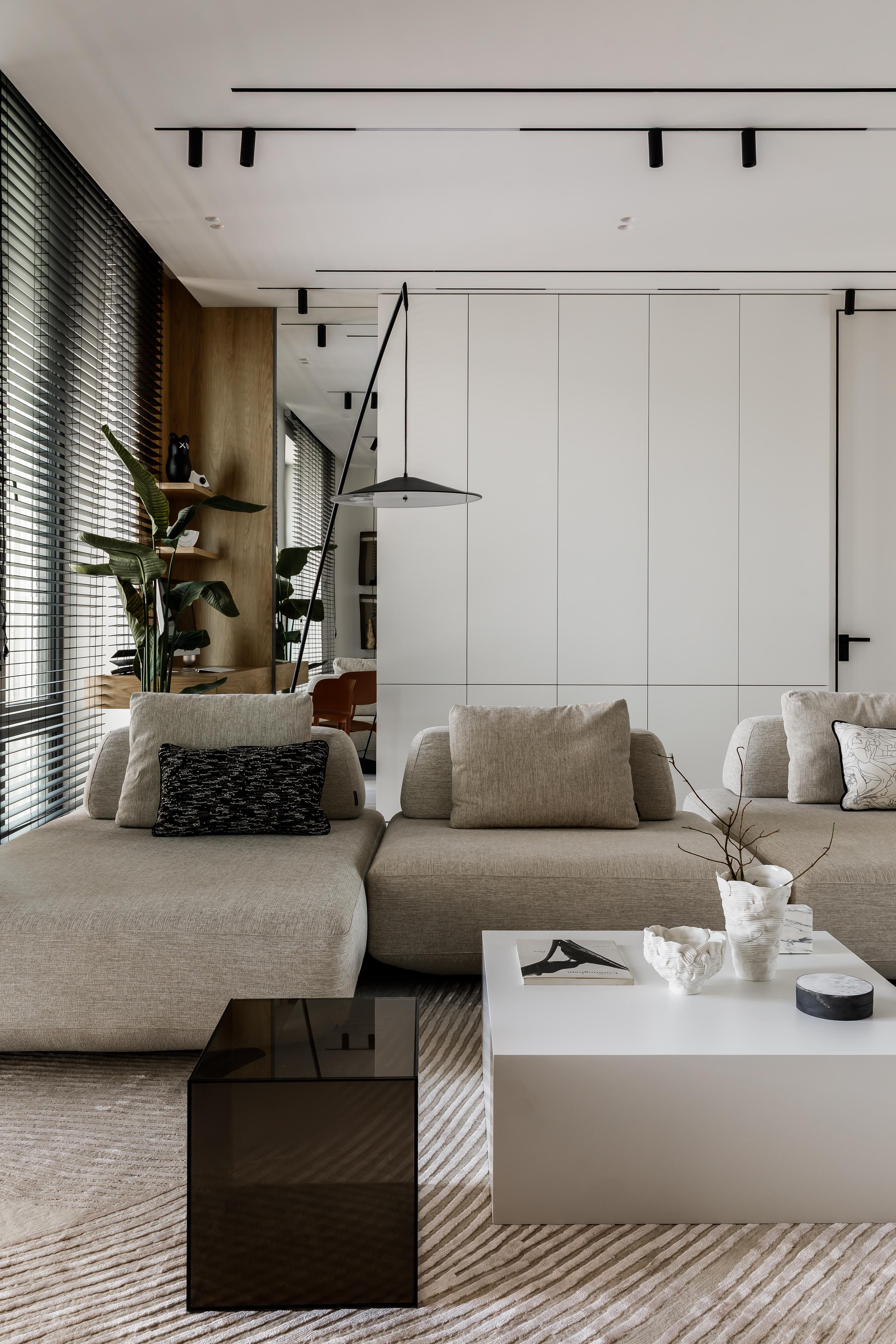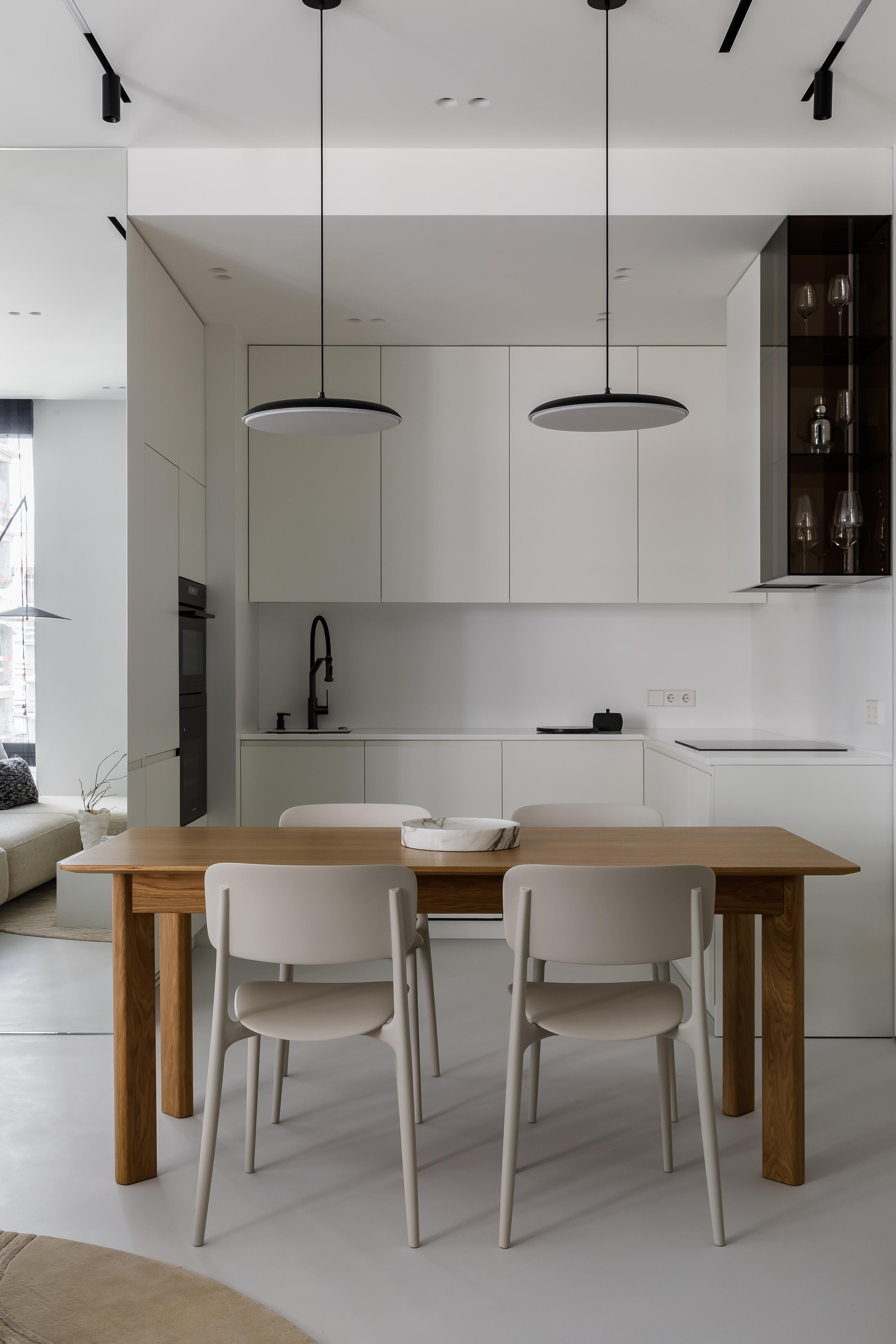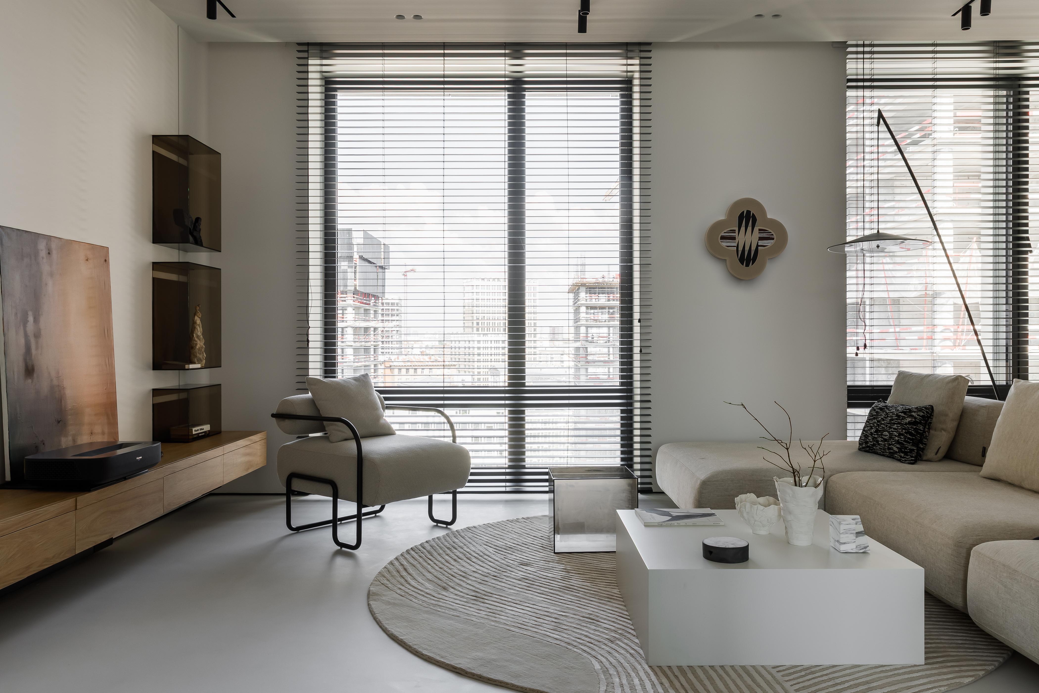 Кирилл — основатель и главный продюсер агентства Semin Agency, он строгий и собранный руководитель, но с друзьями — душа компании. До этого мы удачно реализовывали наши проекты для его друзей из блогерской сферы — так он узнал о нас и тоже обратился за проектом. Кирилл сразу нам сказал, что с ним будет сложно, так как он сам еще не до конца понимает, что ему нравится в интерьерах. Зато он точно знал, что по вечерам у него дома будут шумные вечеринки, а днем он захочет с удовольствием поработать из дома.