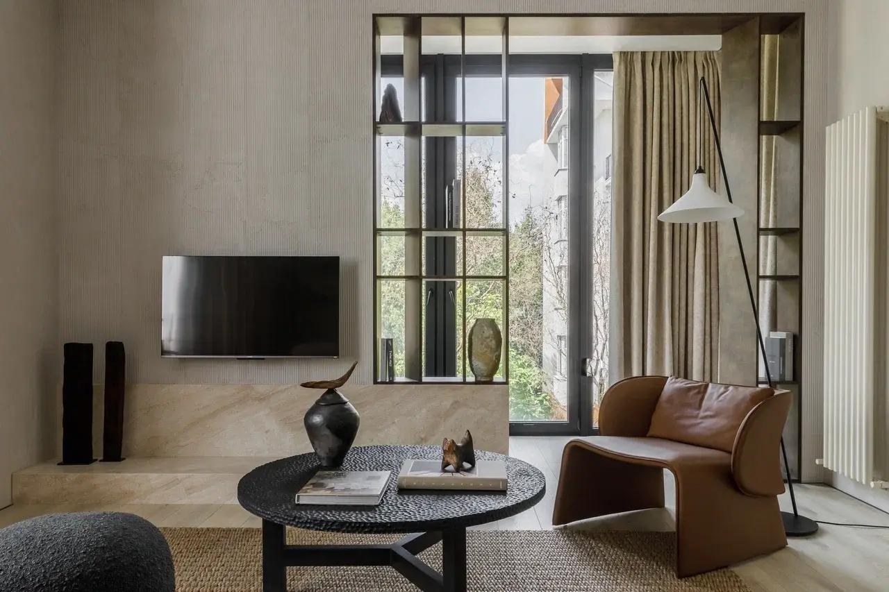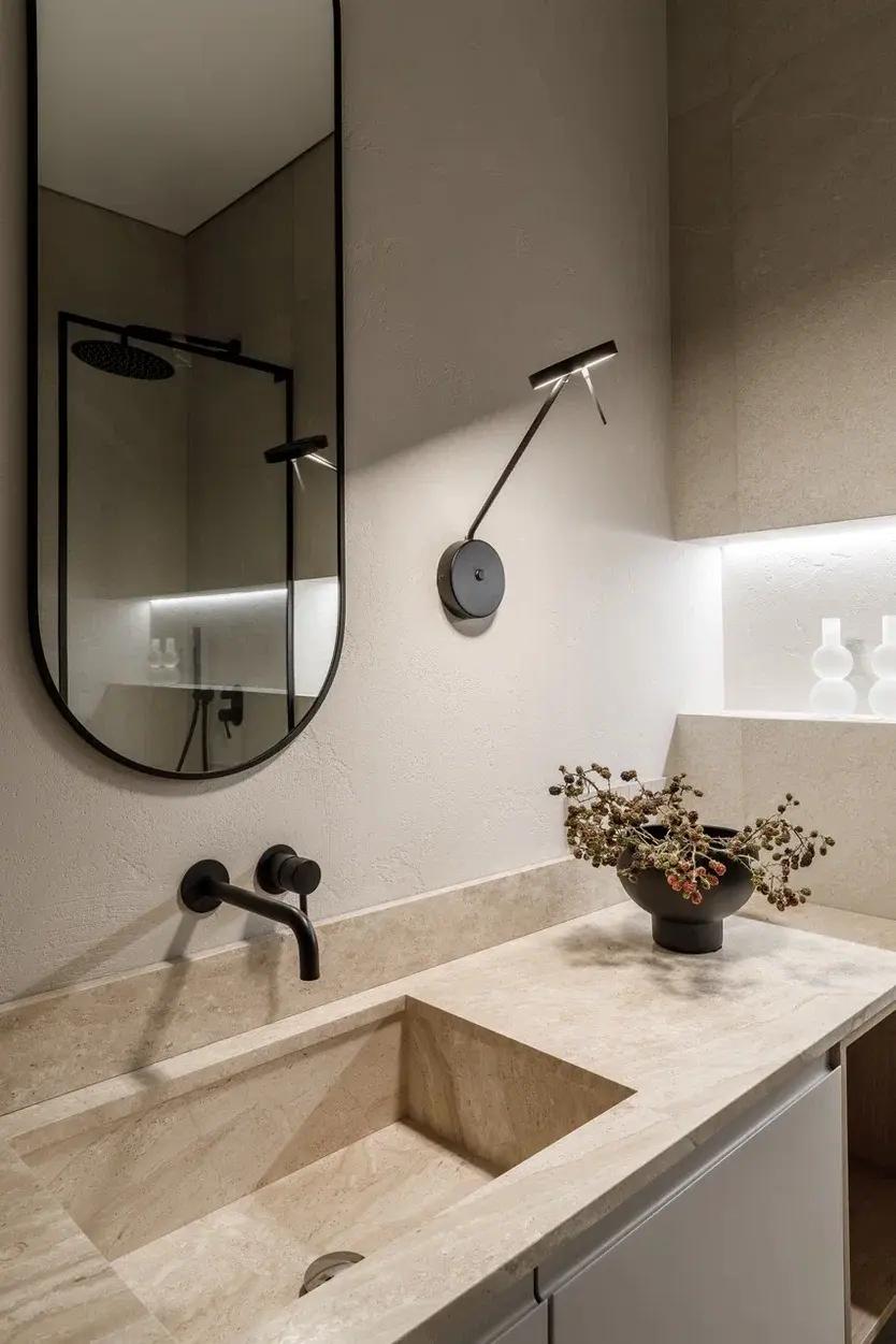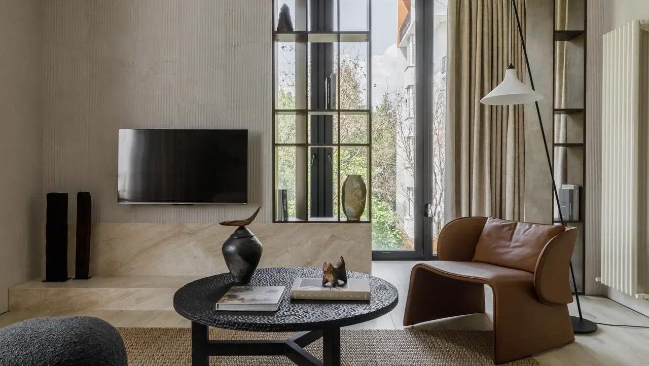 «Интерьер получился очень тактильным и монохромным. Главными героями стали натуральные материалы и оттенки: дерево, травертин, мрамор, лен, рогожка. Для нас было важно объединить пространство через общую цветовую гамму и единство фактур».