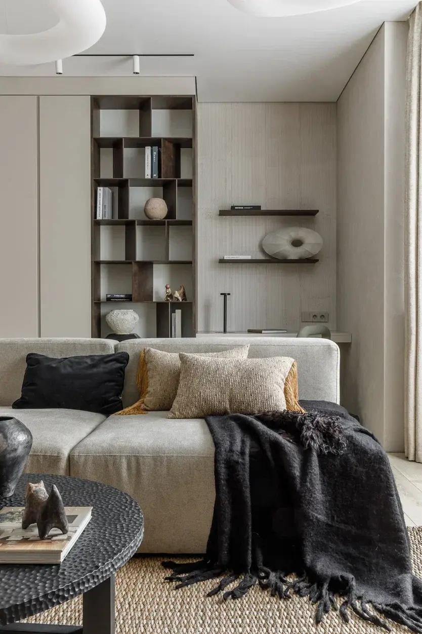 «На площади 80 кв. метров нам удалось разместить кухню, гостиную, спальню, прихожую и два отдельных санузла. Заказчики хотели лаконичный интерьер без ярких акцентов, поэтому мы сделали ставку на натуральные материалы и спокойную цветовую гамму. Объединив гостиную с балконом, мы добавили пространству больше света и ощущение объема. Это было одним из ключевых решений в проекте» — рассказала Наталья Чопенко.