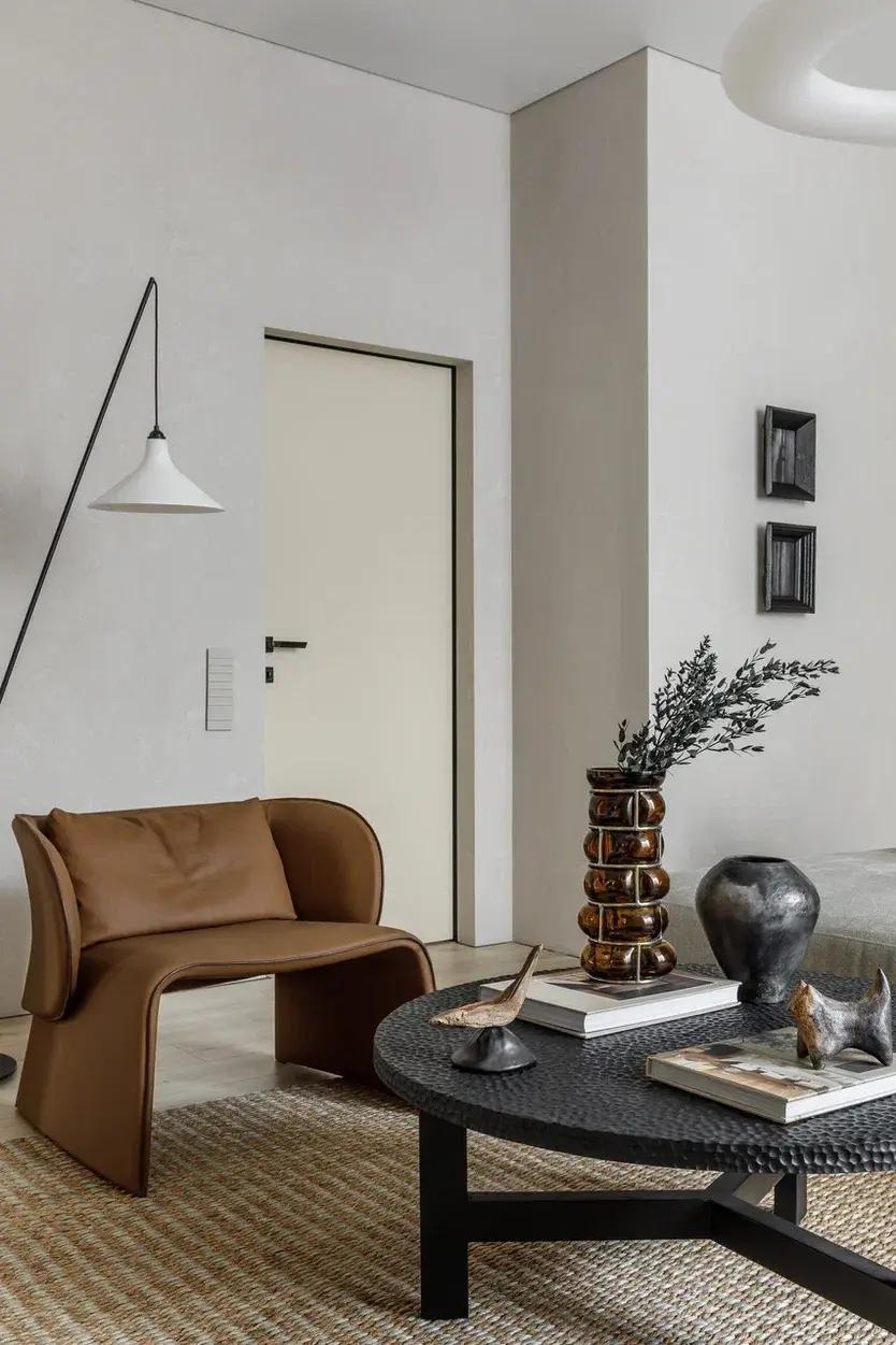 «Акцентами выступают черные графичные детали: накладные светильники, розетки с выключателями, дверная фурнитура, журнальный столик и потрясающее кресло Knight от итальянского бренда Cierre».