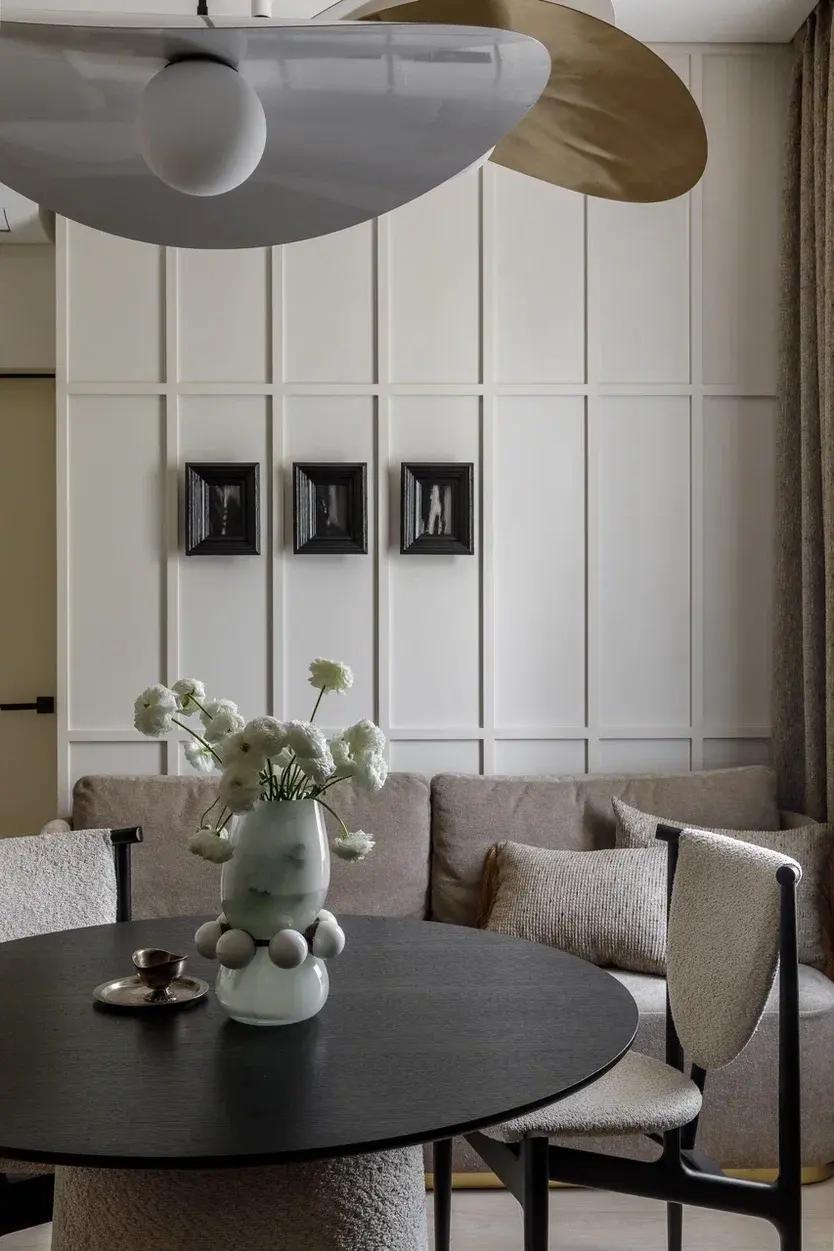 Искусство в черных рамках, Маргарита Якунчева. Корпусная, Apartment. Стол и стулья, Unika. Диван, Mebelioner. Шторы, izabellafareni. Цветы, Germangarden.