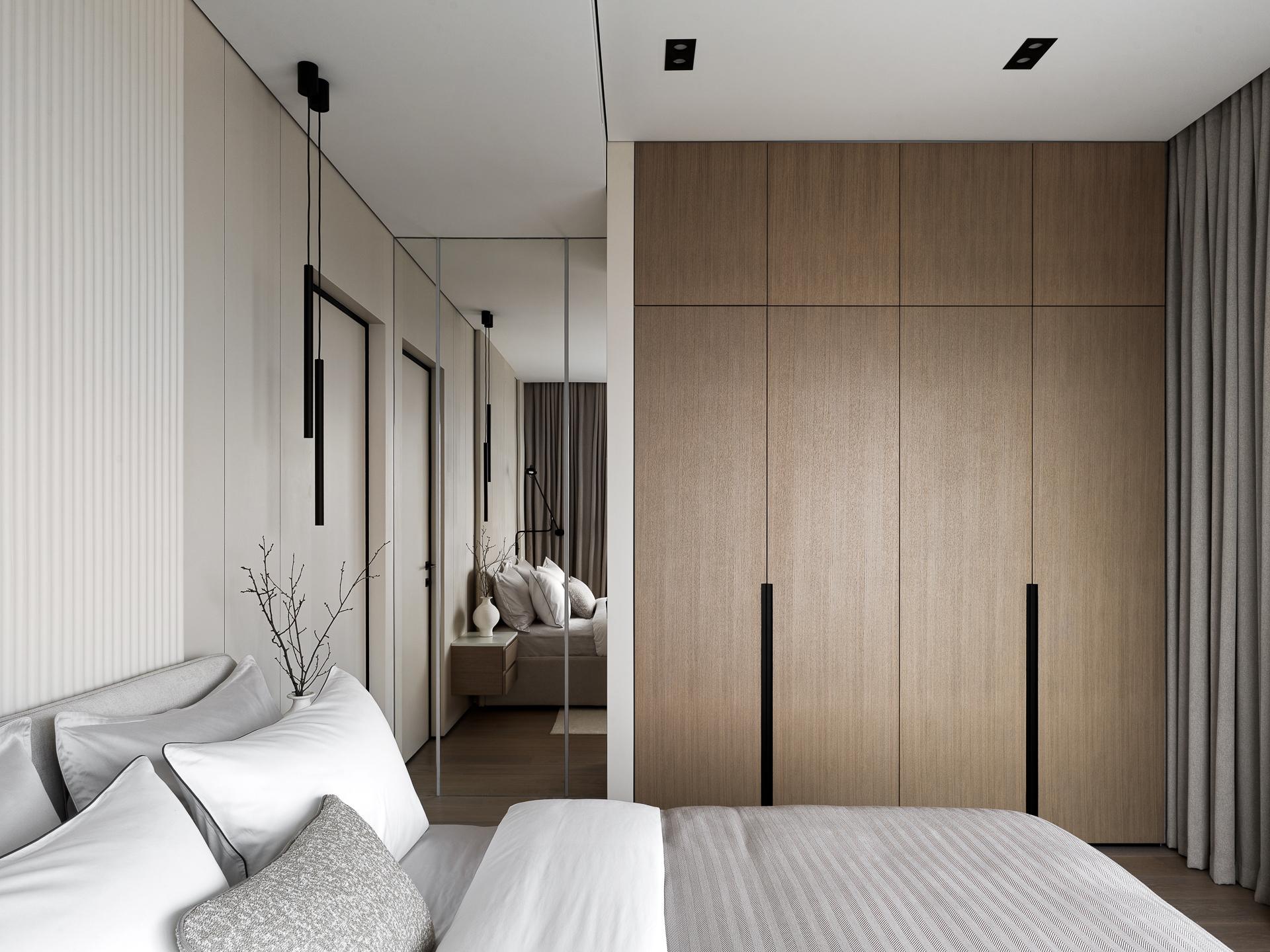 При выборе предметов мы ориентировались на функциональность и тактильность материалов, на лаконичные формы и отсутствие визуального шума. Почти все столярные изделия были выполнены на заказ по индивидуальным эскизам локальными производствами.