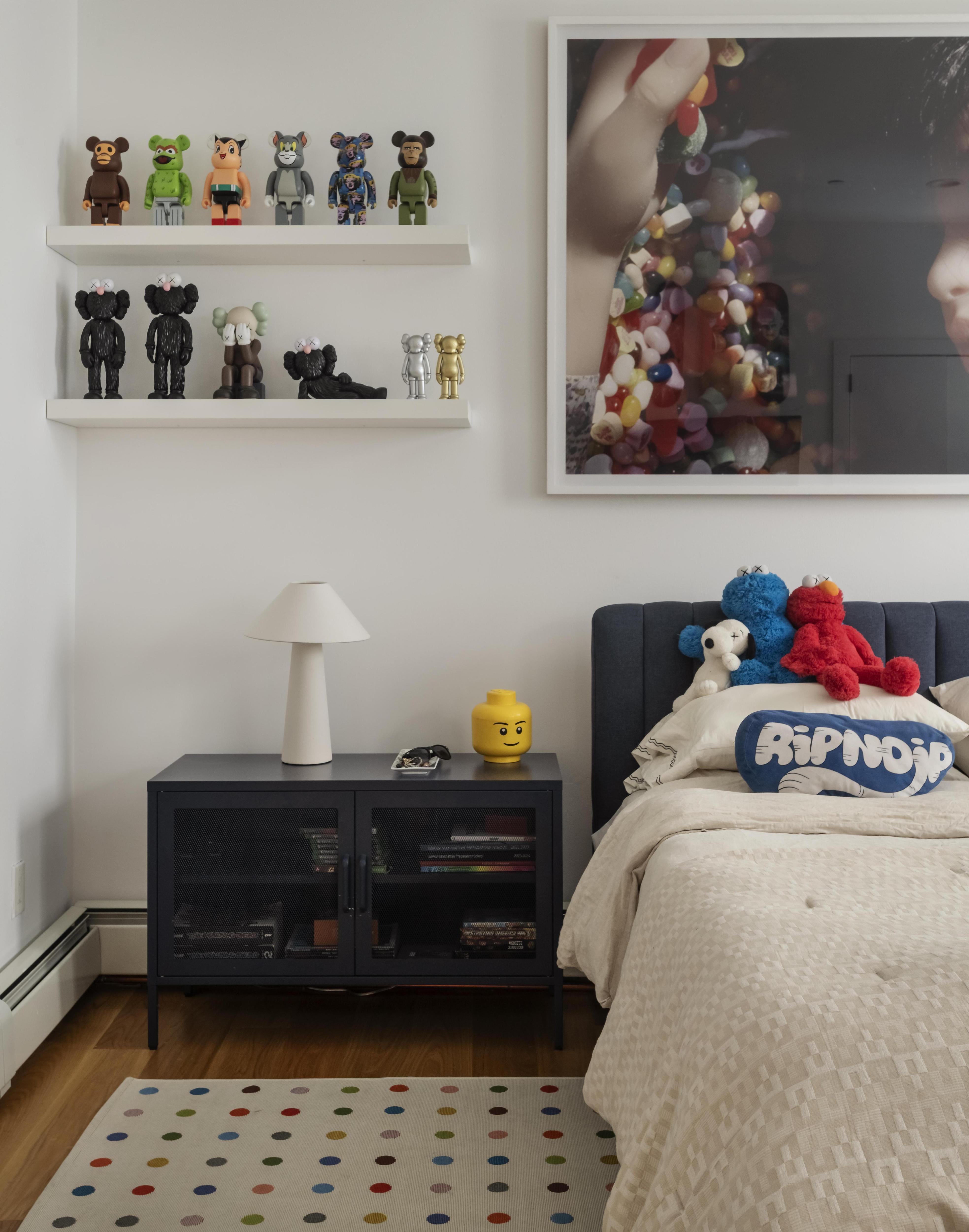 Ковер, Novogratz x Momeni. Искусство, Laurie Simmons. Свет, Novogratz x Globe Electric. Кровать, Novogratz.