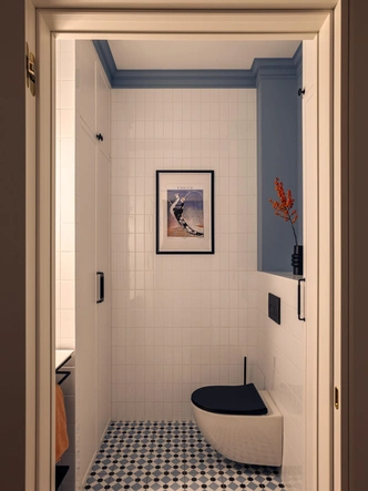 Плитка Oxford, Gracia Ceramica. Двери, «Волховец». Комод, La Redoute. Постер, Vogue. Ваза, Dantone Home. Мебель, Casa Vero. Светильники, Arte Lamp.