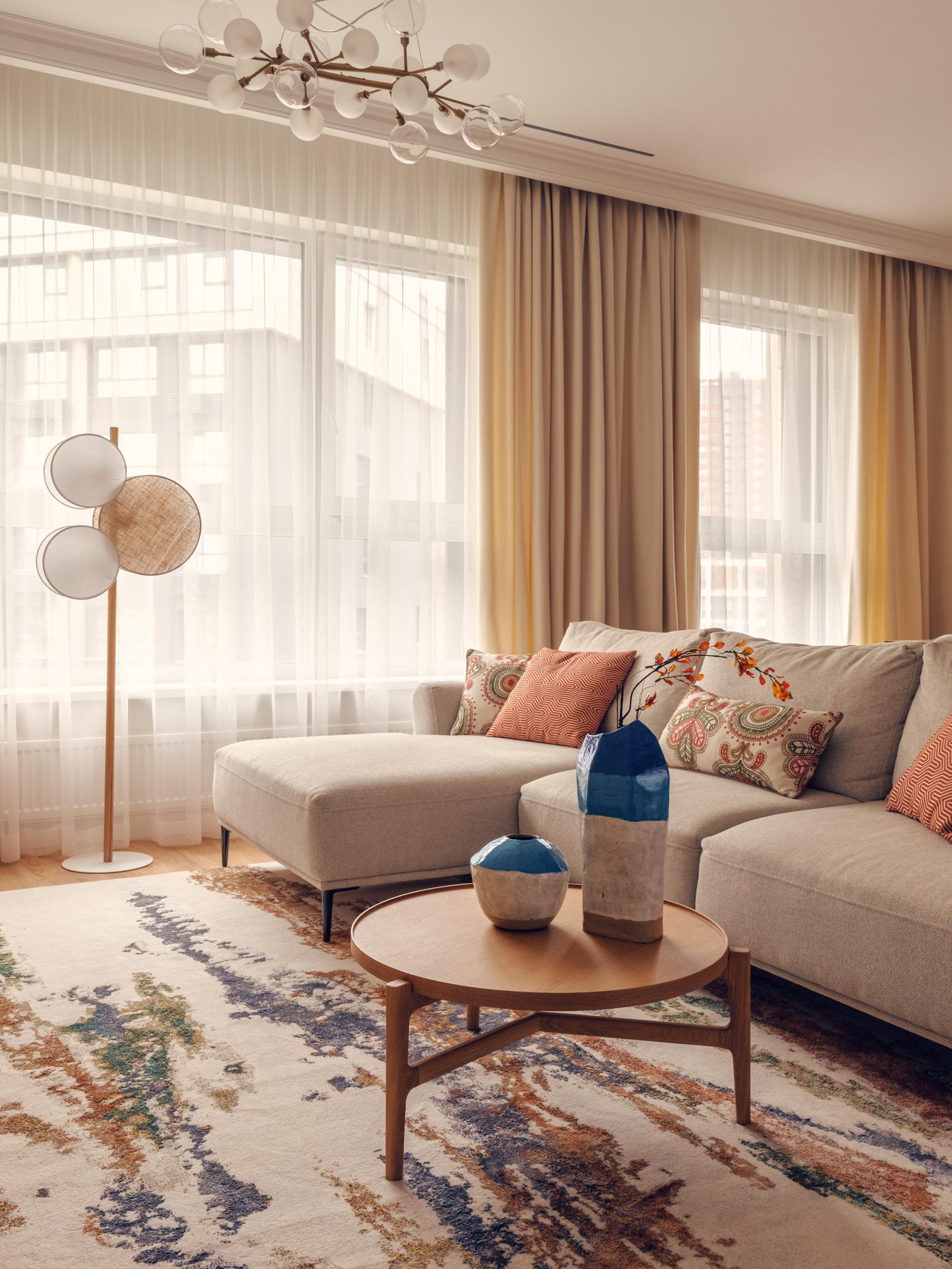 Я очень люблю яркие акценты и солнце, поэтому не смогла удержаться и запустила небольшие красочные пятна во всех комнаты, в основном через текстиль и декор. Они оживляют пространство, но не перегружают. Как солнечные зайчики! А учитывая, что солнца в городе не так много, в этой квартире оно живет даже тогда, когда на улице серо и уныло.