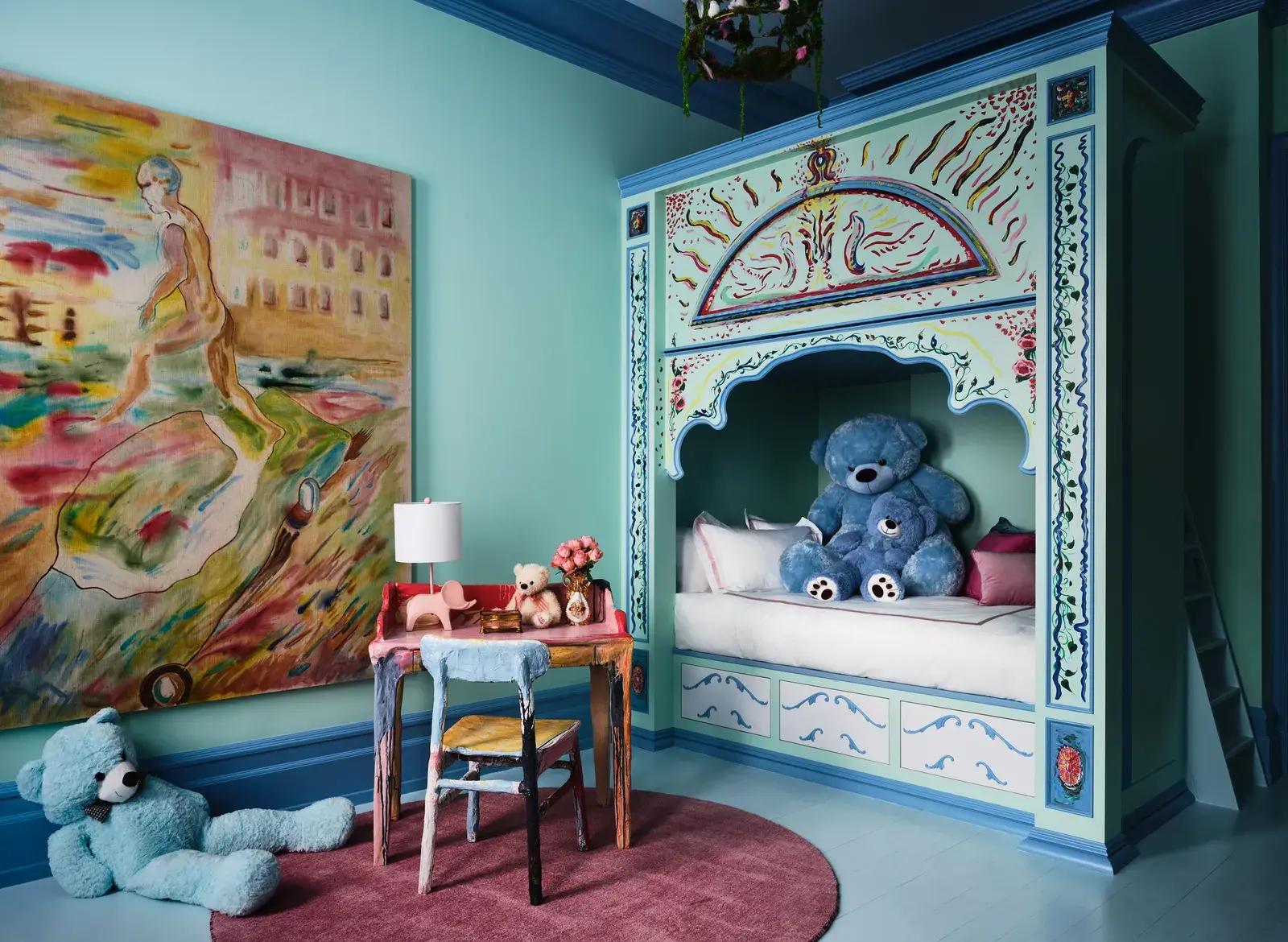 Кровать в алькове, письменный стол и стул в комнате Афины Белль расписаны Джулианом Шнабелем.