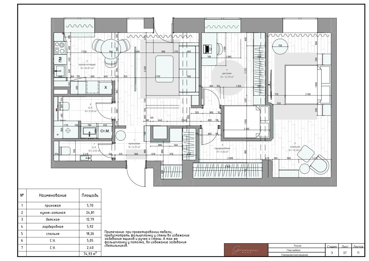 План квартиры 75 кв. м. Проект Анны Громовой.