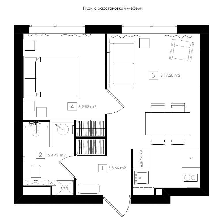 План квартиры 35 кв. м. Проект Татевик Пайлеванян.