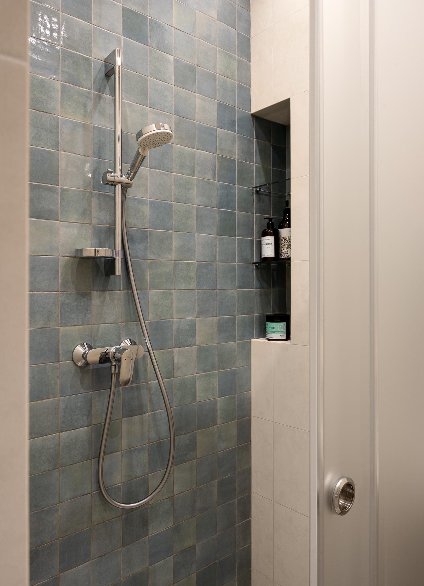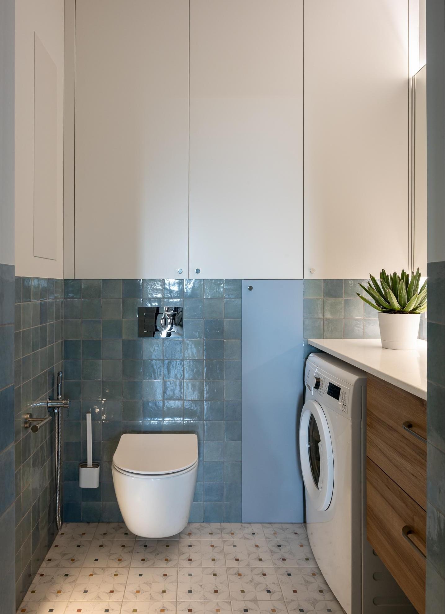 Ванная и санузел немного отличаются по цветовой гамме и фактурам, при этом они не выбиваются из общей композиции, выглядят очень живо, легко и свежо.