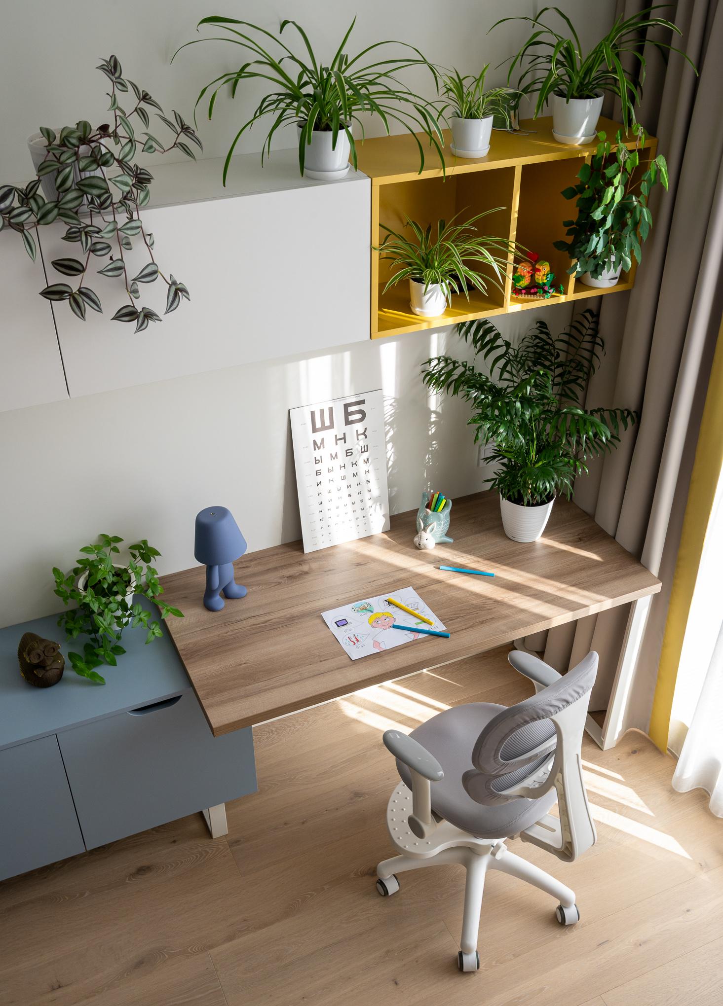 Мои заказчики — молодая семья с ребенком 10 лет. Хозяин работает в IT, а хозяйка — керамистка, создает украшения ручной работы. У них есть милая кошка (ей уже 18 лет!) и волнистый попугай Лимончик, которого научили парочке фраз. Интерьер мы создавали как спокойный фон для жизни и творчества: мягкие природные оттенки, тактильные материалы, продуманная до мелочей планировка — было очень важно объединить эстетику ручной работы, технологичность и ощущение домашнего уюта.