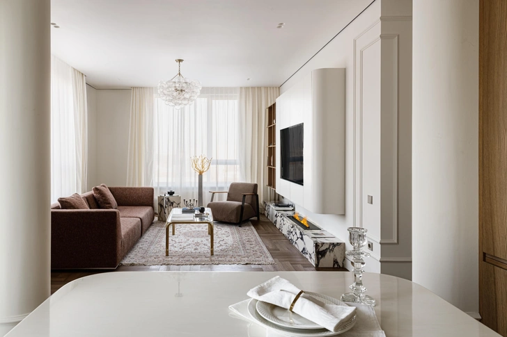 Заказчица — молодая женщина с активным ритмом жизни, она ценит комфорт, порядок и спокойствие. Для нее было важно получить интерьер, в котором легко жить каждый день: без визуального шума, но с ощущением уюта и продуманности каждой детали. Она ждала пространство, которое не привязано к быстро меняющимся трендам и будет актуально не один год.