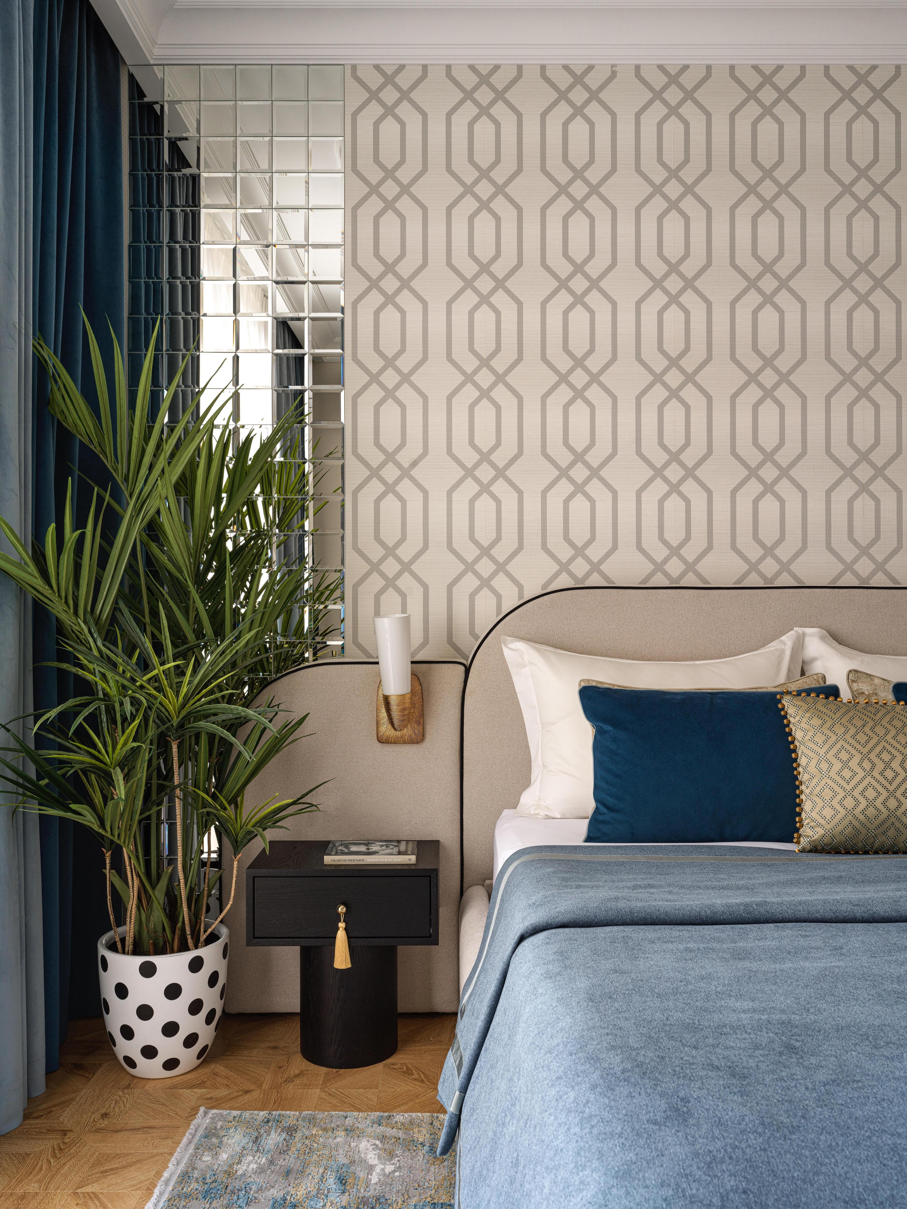 Обои Grasseffects, KT Exclusive, Decoroom. Кровать, Vankov. Бра, Loft concept. Тумба, мастерская Василия Кириллова. Кисточки, Dec-or.