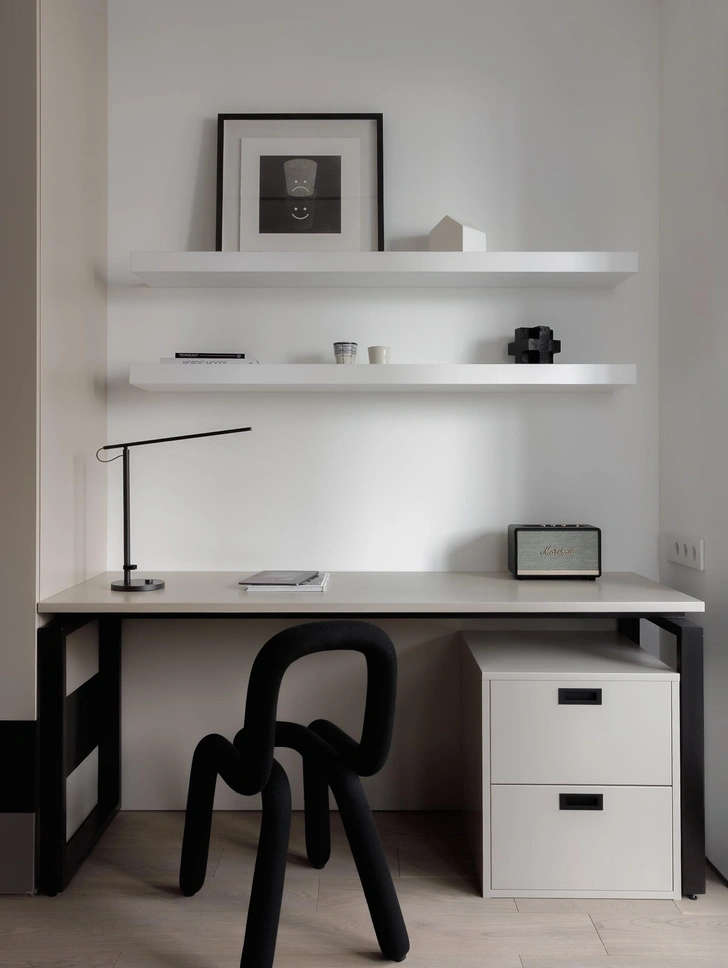 К нам обратилась молодая семья по рекомендации своих близких друзей, которые прошли с нами уже не один ремонт. В тот момент они ждали второго ребенка, поэтому помимо красоты им была важна функциональность и эргономика. Квартиру купили у предыдущих владельцев уже на этапе отделки, но планировка совсем не устраивала. Поэтому нам пришлось «отмотать назад» строительные работы и начать все с самого начала — с поиска идеального решения.