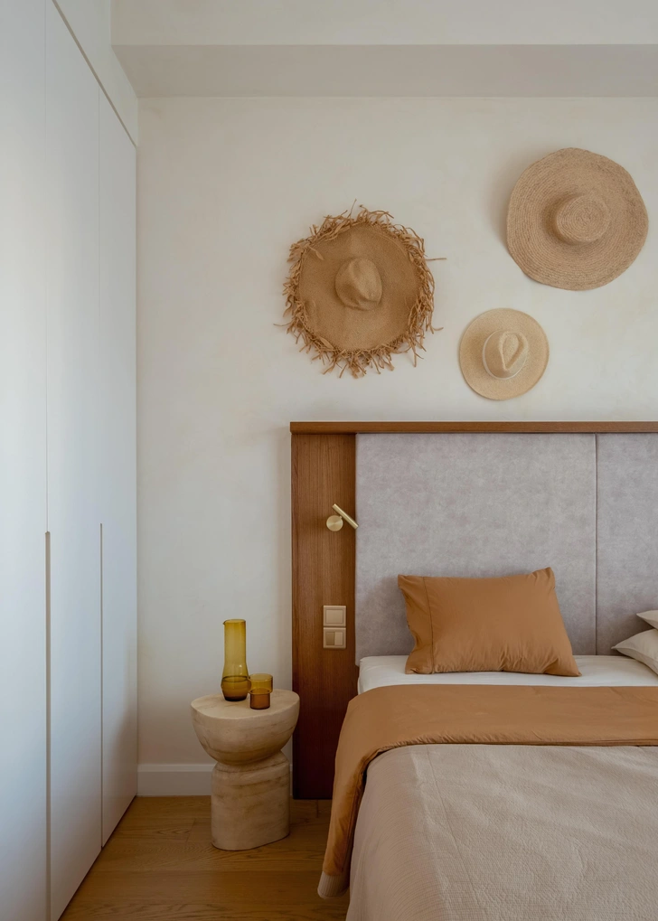 Кровать изготовлена на заказ. Постельное белье, Zara Home. Столик, Pergamous. Шляпы из личной коллекции заказчицы.