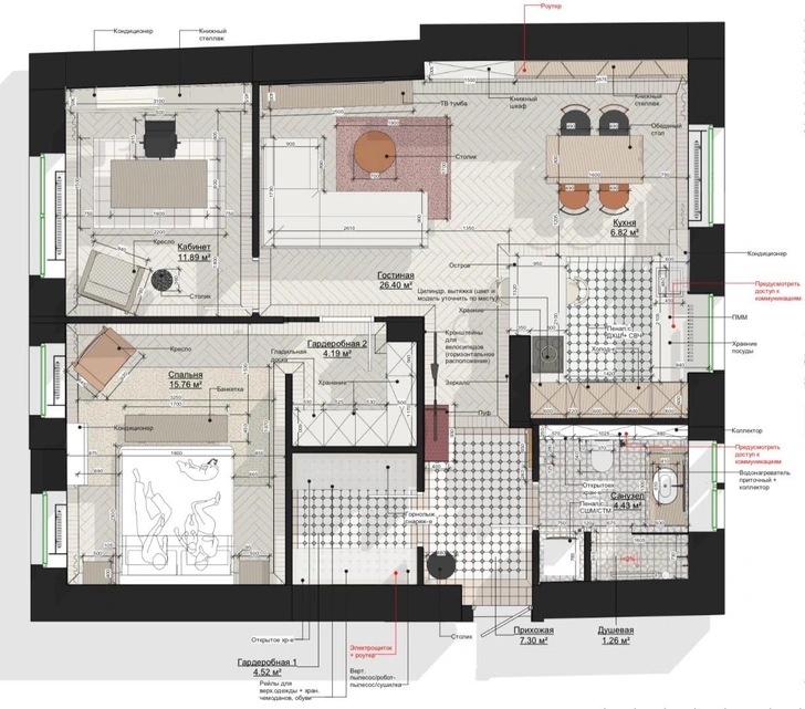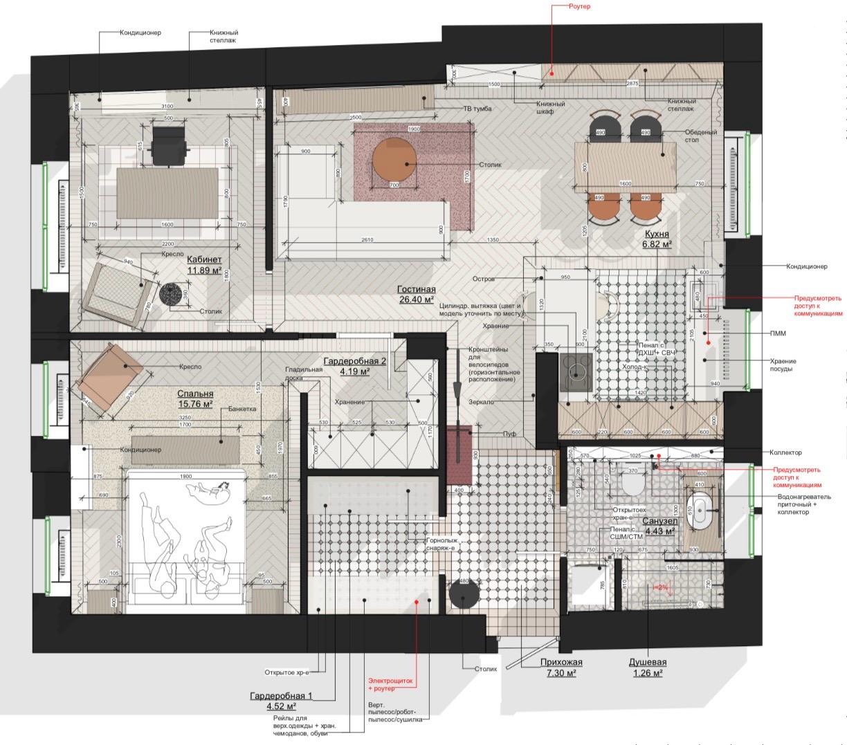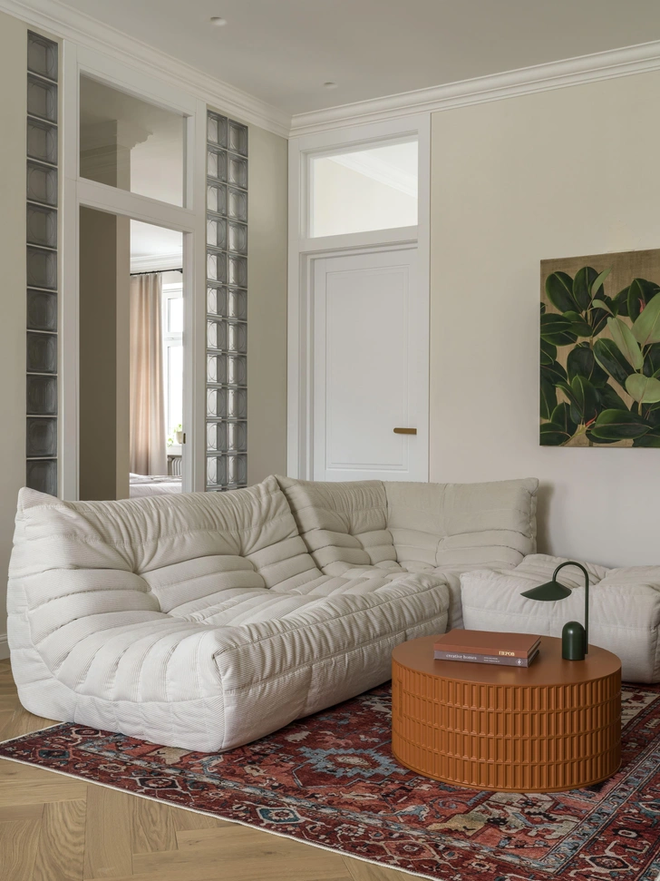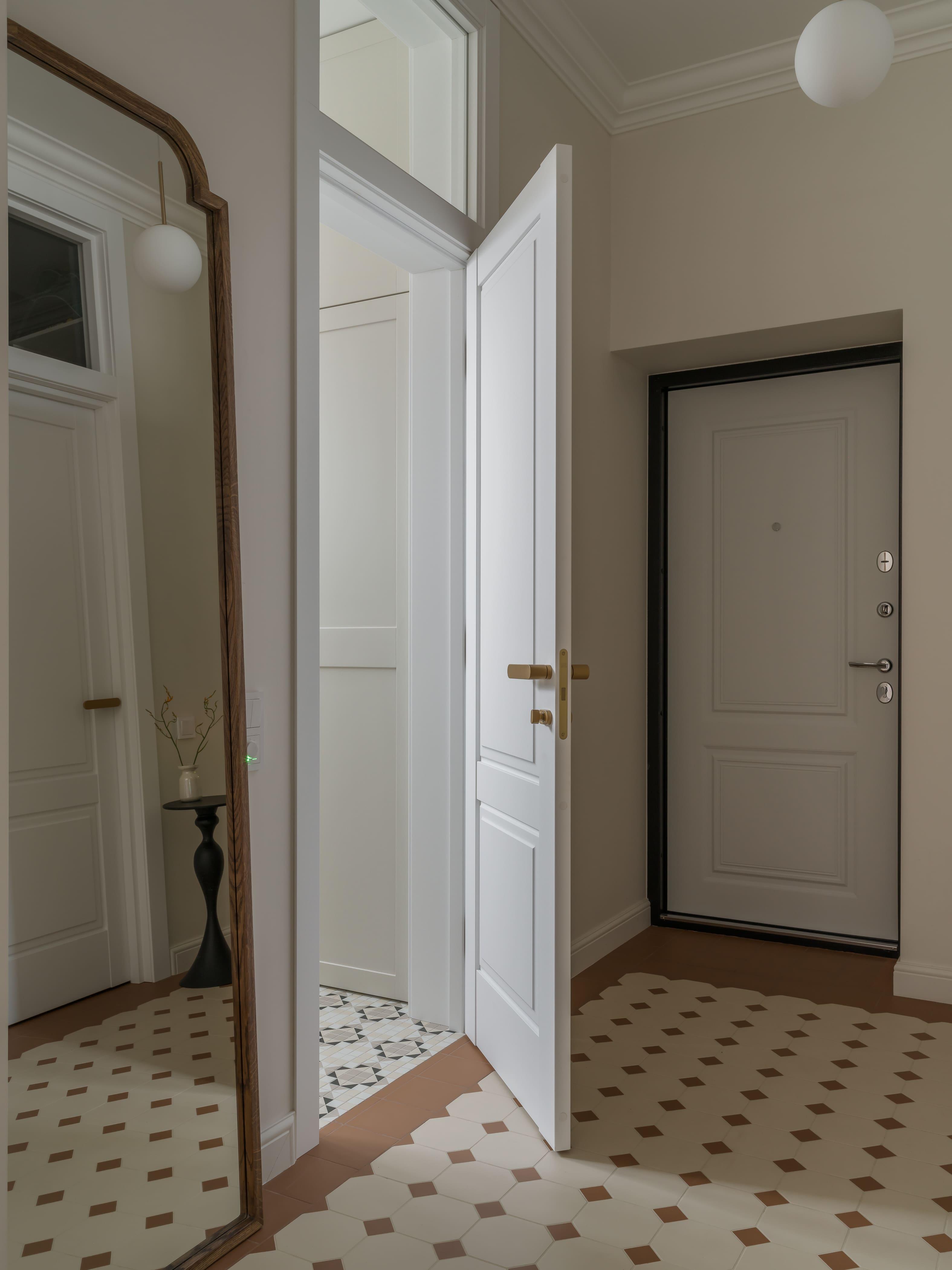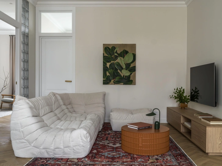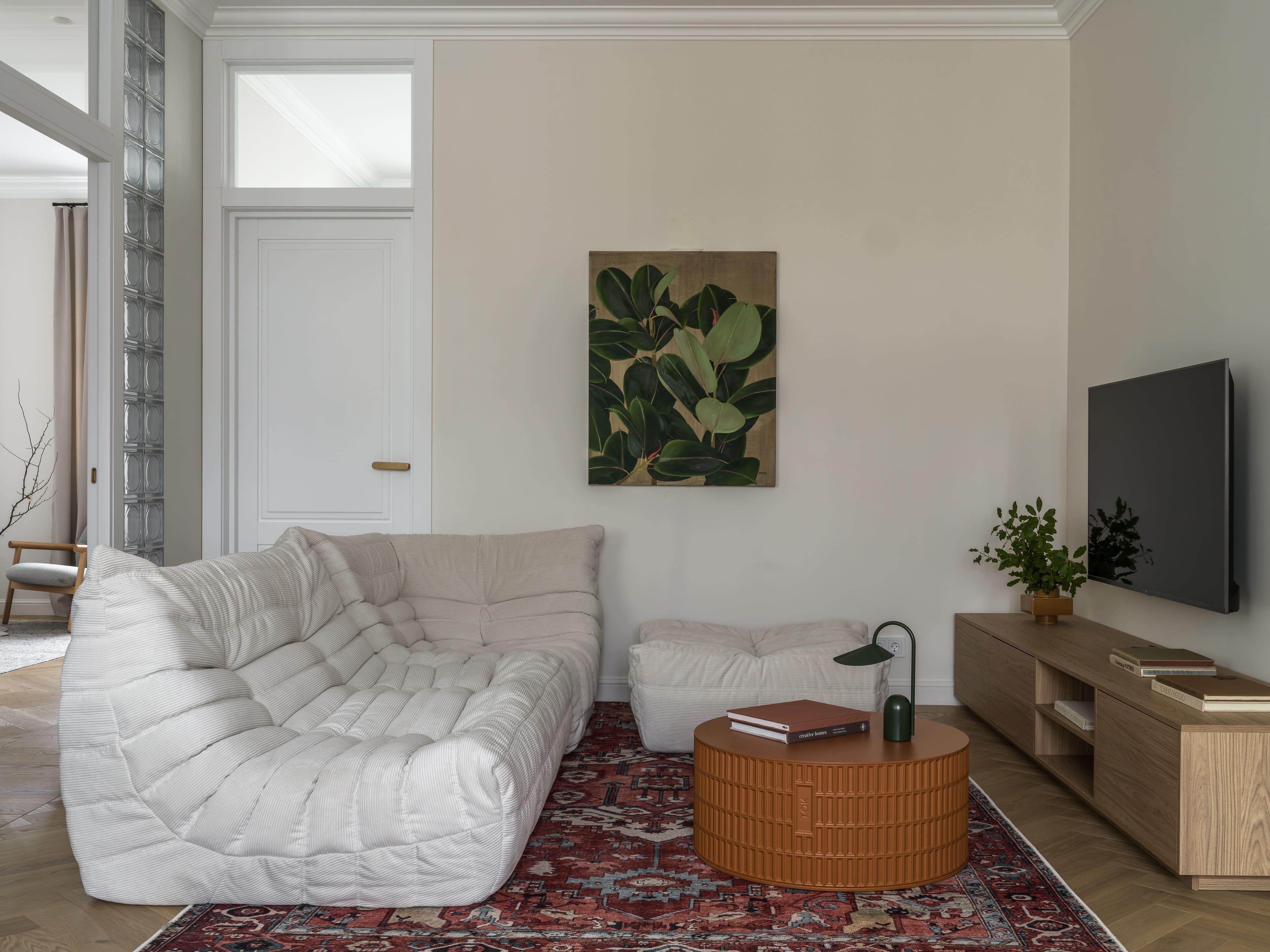 Интерьер создавался для молодой пары, у них были четкие запросы: светлый, спокойный и функциональный интерьер, немного ярких акцентов, удобное хранение и разные сценарии освещения (дневной, вечерний и ночной свет). Еще было важно сохранить исторический контекст квартиры без ущерба современному комфорту и стилю, она находится в старом фонде. Планировка была неудобной, и мы кое-что изменили: убрали лишние перегородки, объединили кухню и гостиную, соединили санузел и ванную, из кладовой сделали гардеробную.