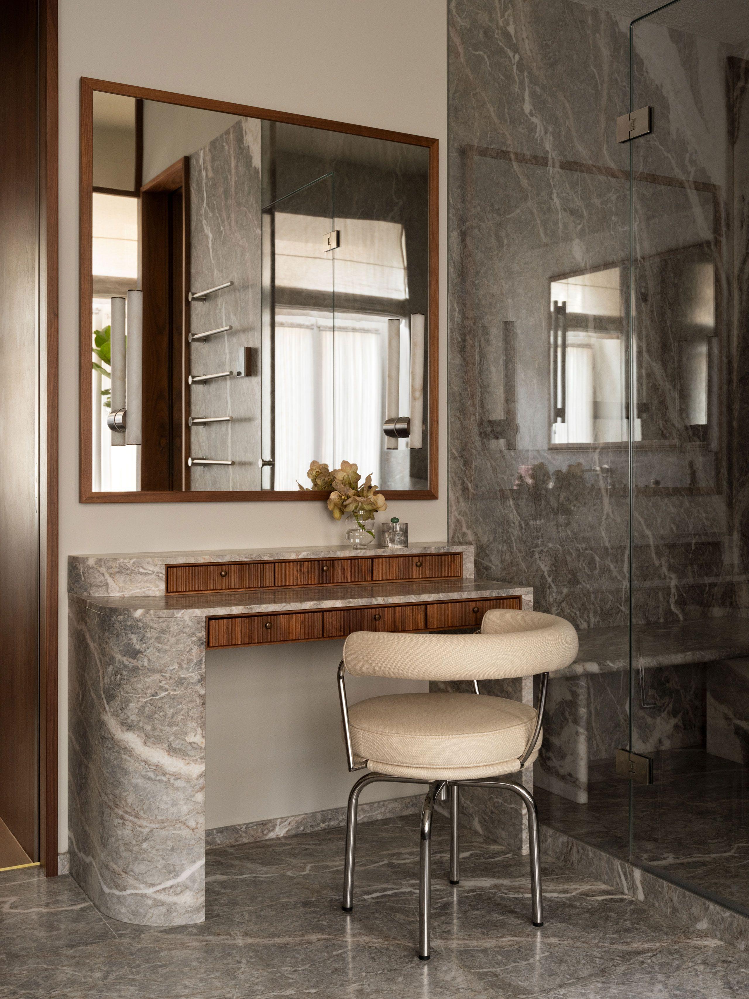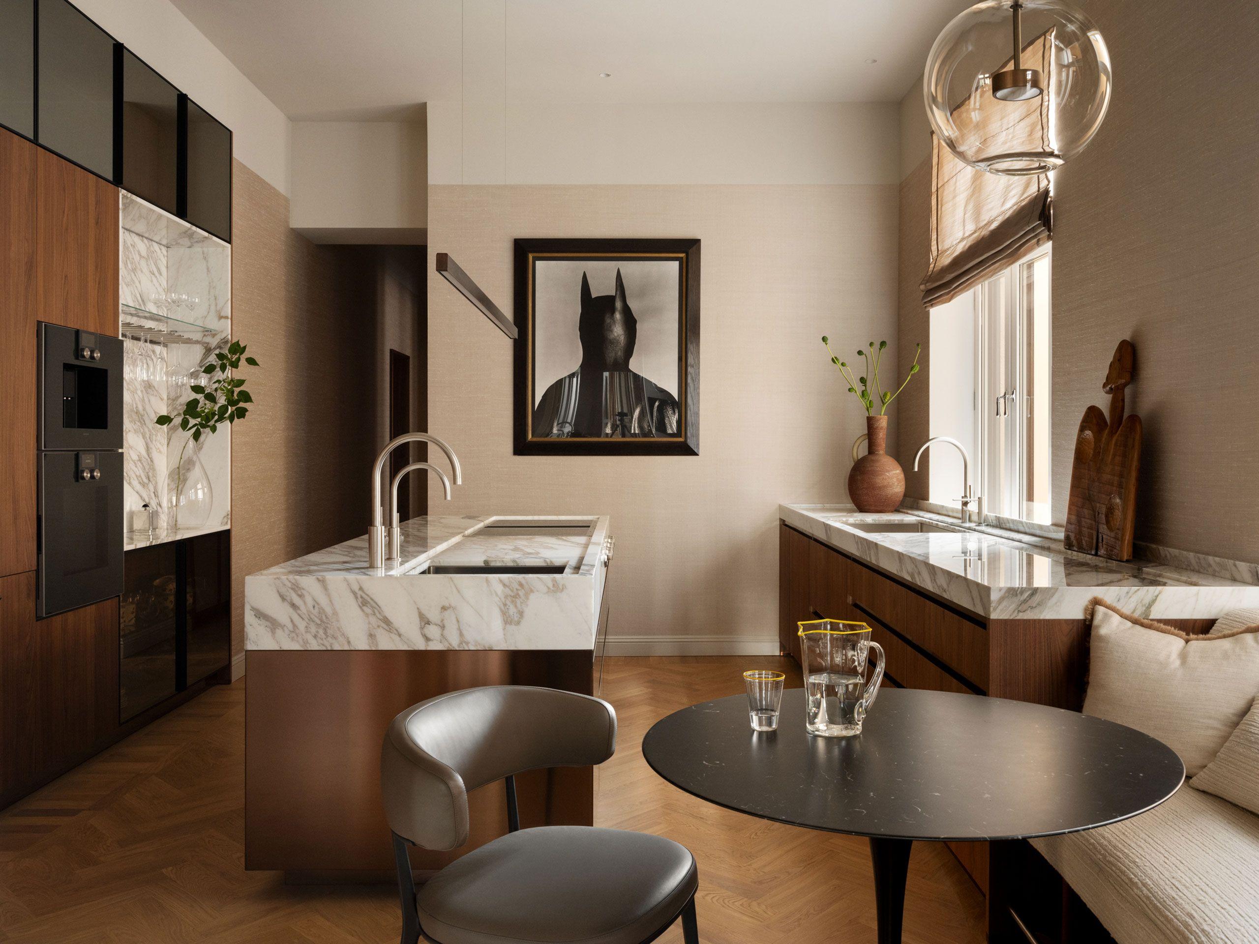 Ключевой задачей для создателей было объединить эклектичные вкусы заказчиков в целостный и вневременной дизайн. Это было достигнуто за счет тщательно выверенной палитры материалов, говорящих на языке тихой роскоши.
