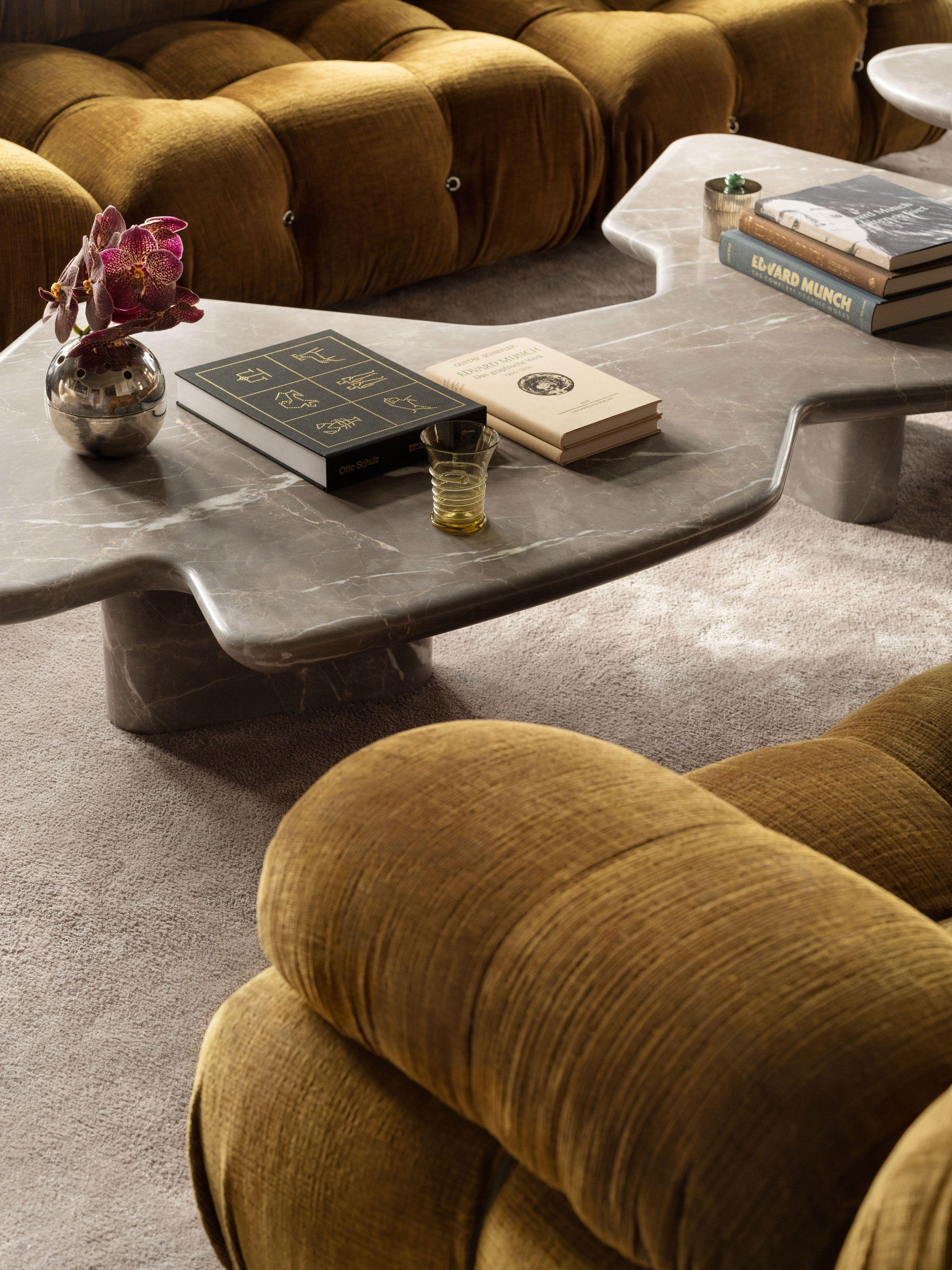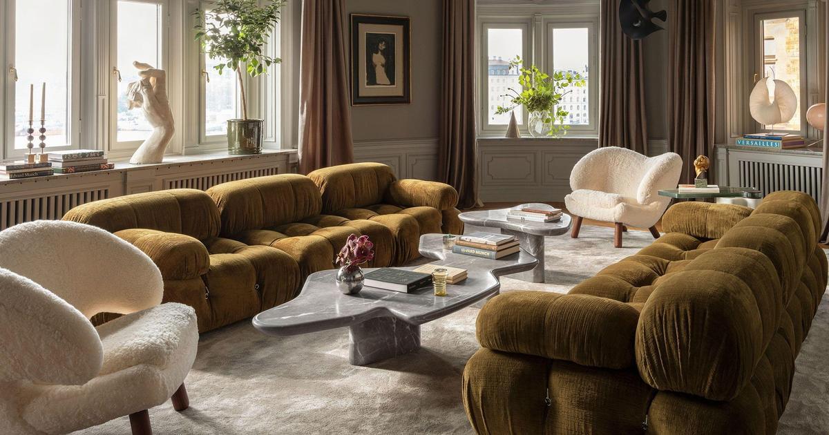 Кресло Pelican Lounge Chair 1940 года, дизайн Финн Юль. Диваны дивана Camaleonda 1970-х годов, дизайн Марио Беллини, B&B Italia