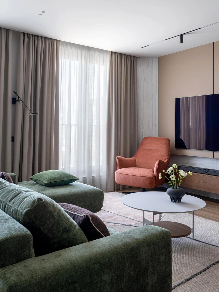 Диван и кресло, SK Design. Трековые светильники, «ЦентрСвет».