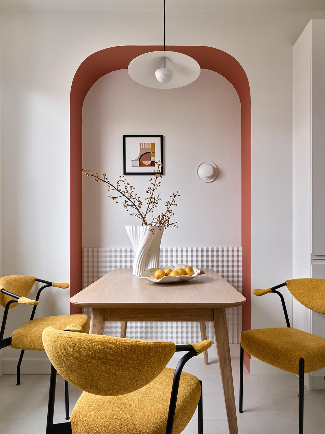 Стулья Sid, Unika Moblar. Обеденный стол, Lulu space. Бра, Vibia («Палантир»). Подвесной светильник, Aromas del campo («Палантир»). Картина, Татьяна Кирикова. Керамика на столе, Izzy Decor.