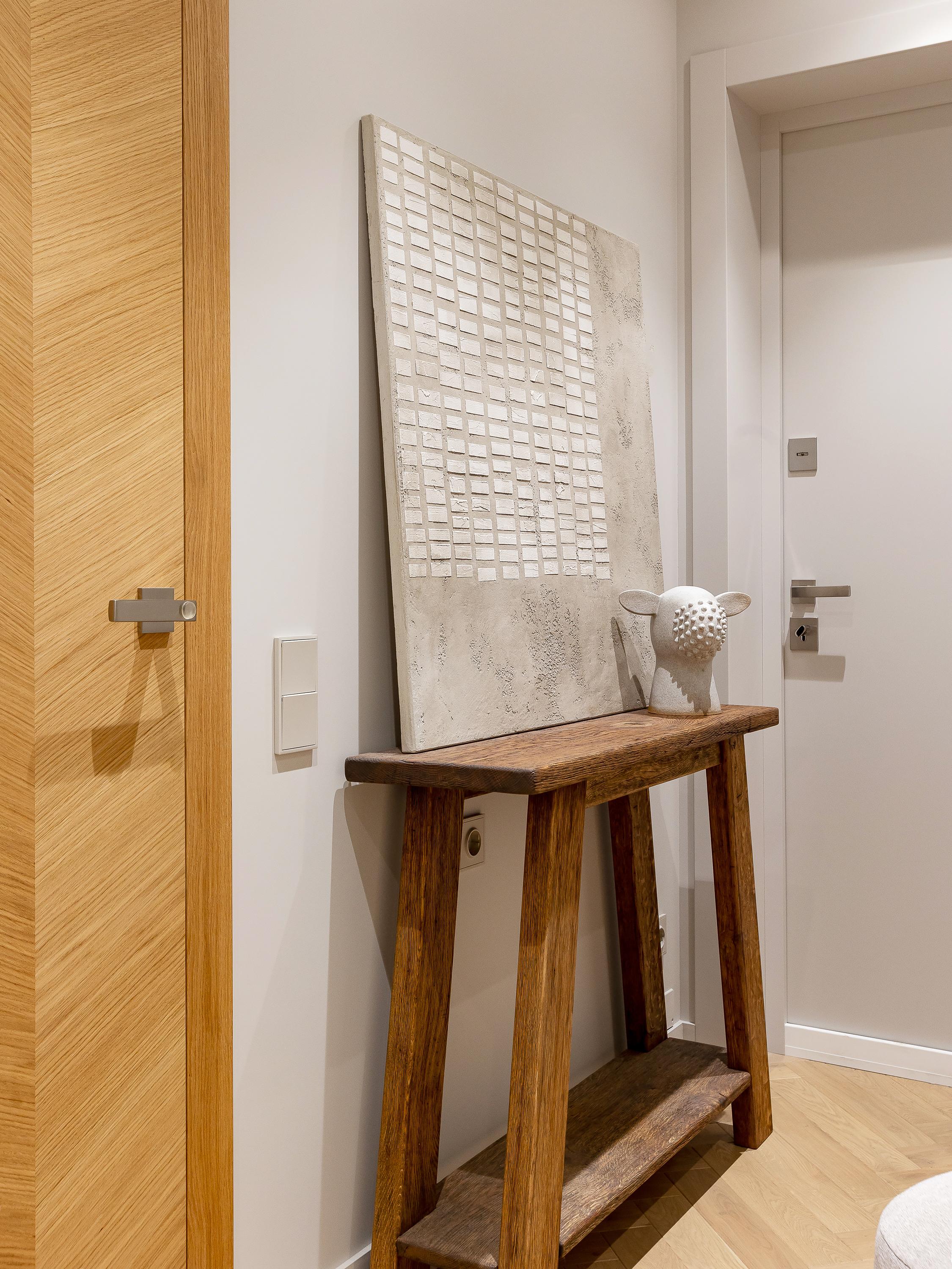 Двери, homeporte.by. Паркет ArteTech, Finex ArteTech. Краска Joker, Tikkurila. Деревянная консоль изготовлена по эскизам дизайнера, aleksandr_kim5. Картина, Дарья Хлусевич.