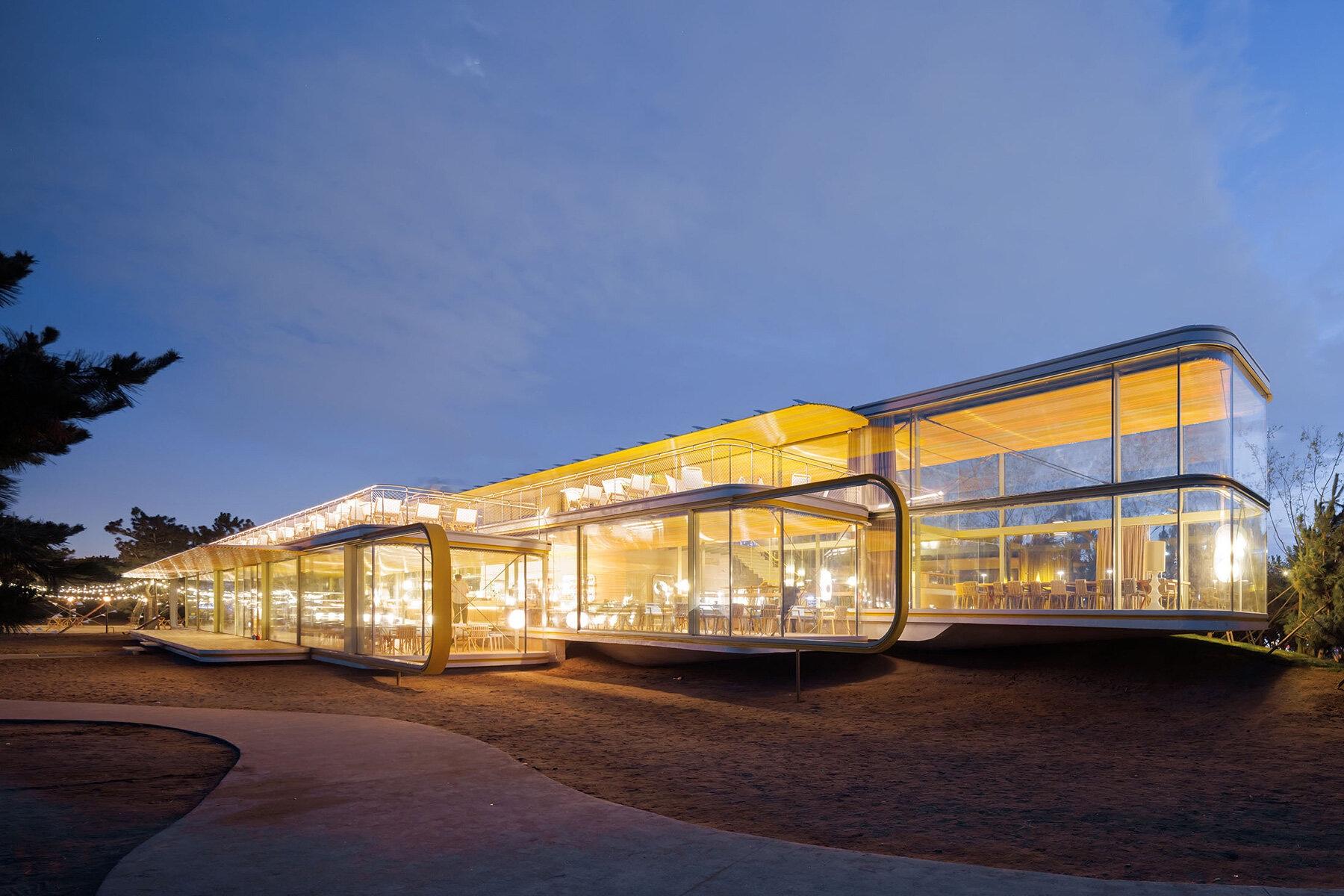 Конструкция кафе Chiringuito площадью 690 квадратных метров задумана как прозрачный мост между лесом и морем. В ней отразилась фирменная игра архитекторов Selgascano со светом, цветом и прозрачностью.