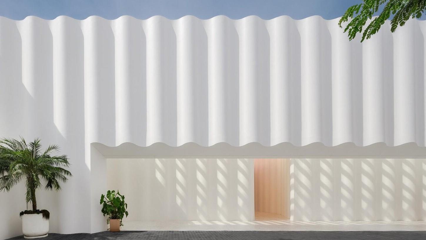 Первый двор функционирует как зона прибытия и высадки, откуда гостям открывается вид на основной фасад отеля. Вертикальные волнообразные формы обрамляют вход и направляют гостей к вестибюлю. В течение дня конструкции верхнего светового люка отбрасывают меняющиеся узоры света и тени на окружающие поверхности. Остекление светового люка меняется от прозрачного к оранжевому, напоминая о тонах заката.