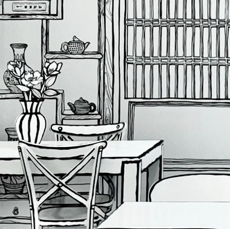 Ресторан Shirokuro в Нью-Йорке выглядит как скетчбук, а его посетители чувствуют себя героями мультфильма или книжных иллюстраций. Все детали интерьера нарисованы художницей Мирим Ю. За три месяца она расписала пространство и мебель ресторана — от многочисленных «деталей» на стенах до столиков и стульев.