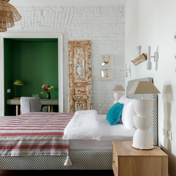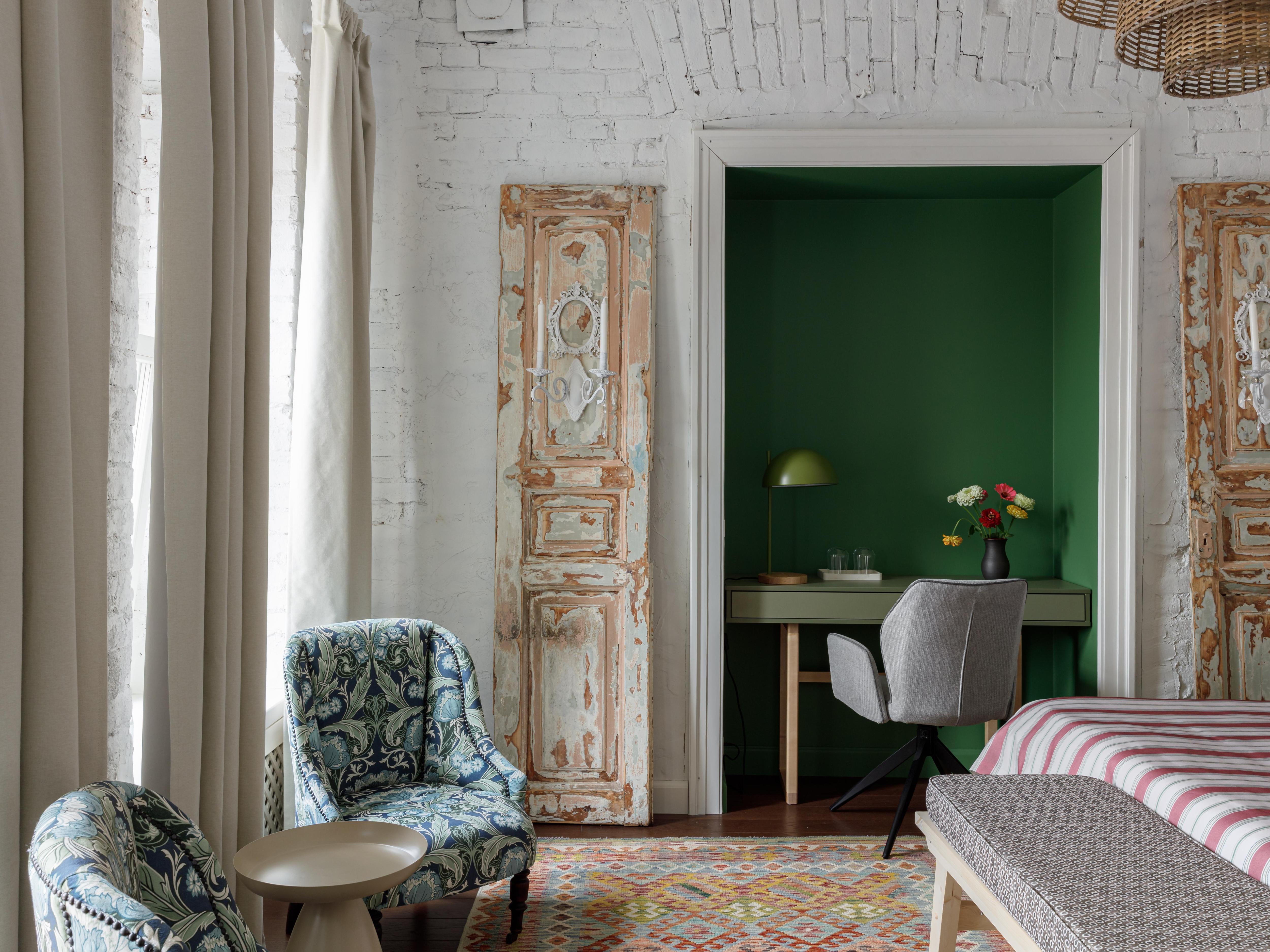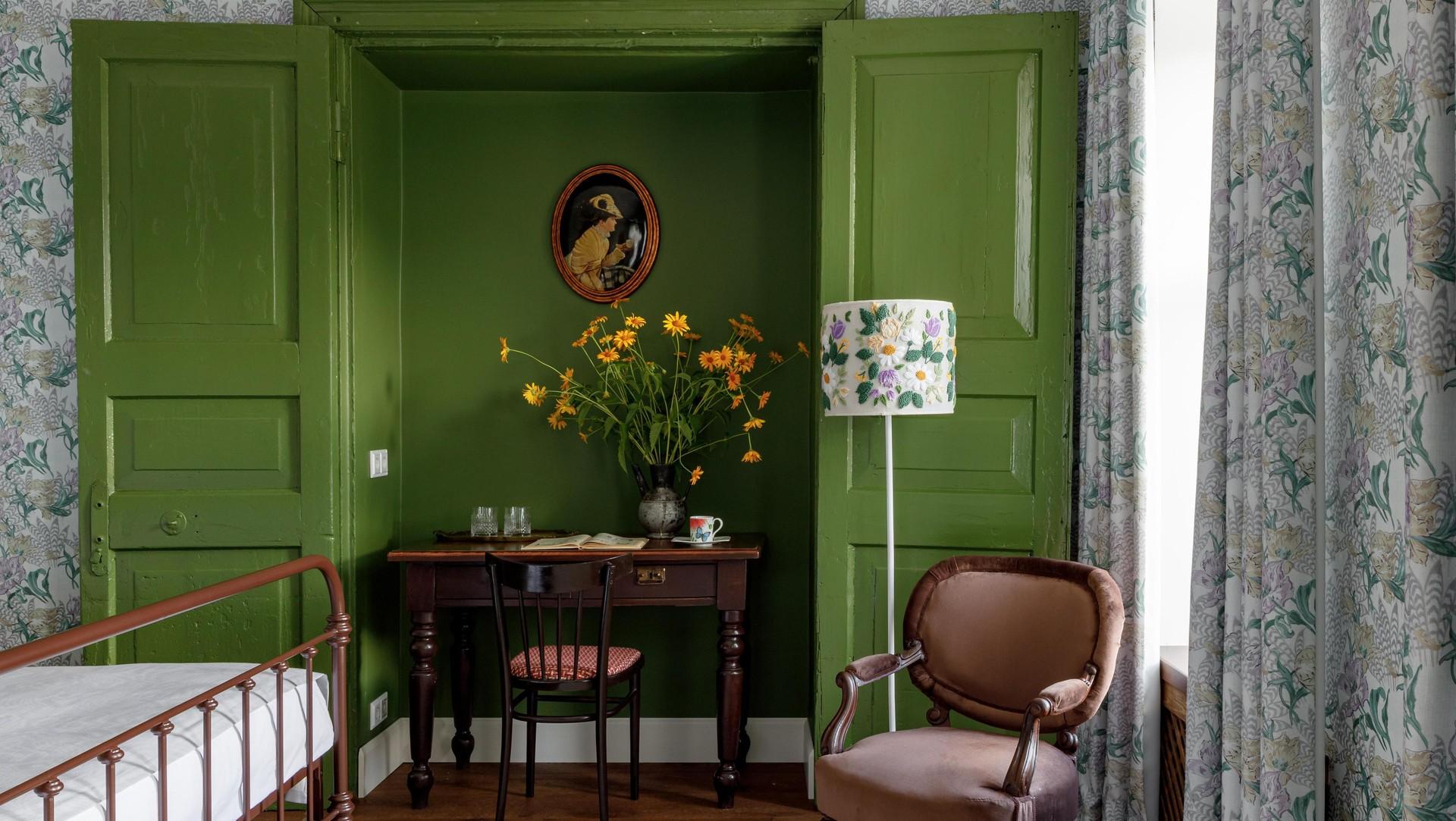 Интерьер номера «Разноцветные бусы» создает ощущение беззаботного детства, каким оно было у Марины Цветаевой на даче в Тарусе