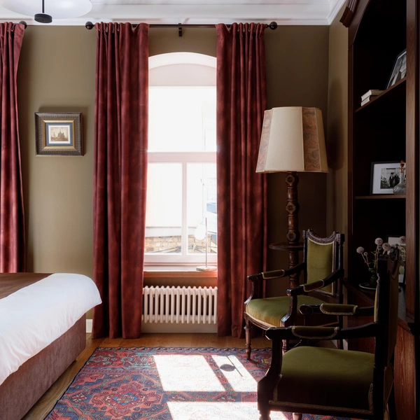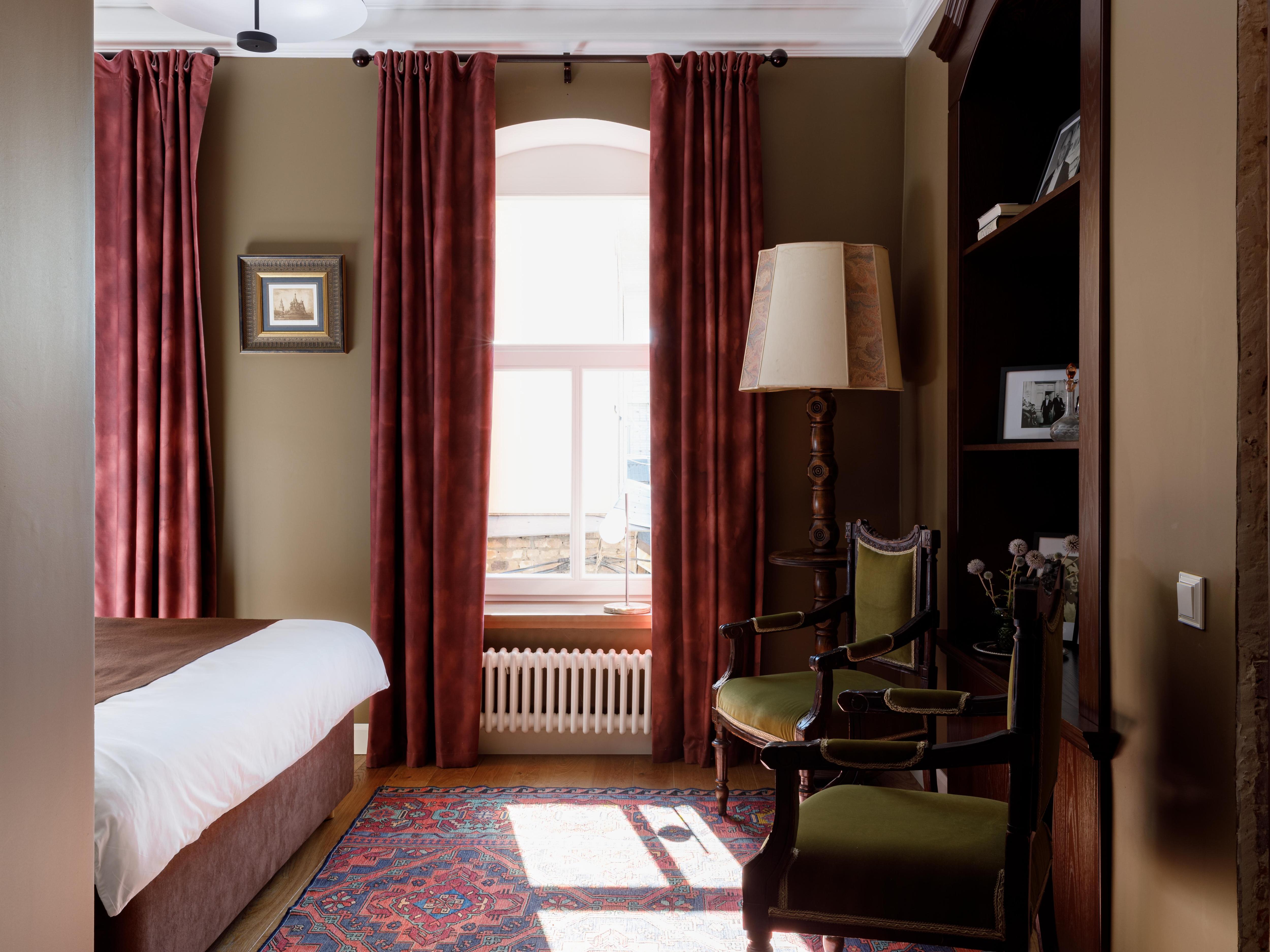 Прошлое в интерьерах отеля представлено не только сохраненными и бережно восстановленными историческими деталями вроде лепнины или дореволюционной печи в гостиной, но и подлинной антикварной мебелью и предметами декора XIX века. А еще здесь собрана богатая библиотека русской классики — так приятно сесть с книгой у окна, наблюдать за неспешной жизнью города и наслаждаться тишиной и покоем!