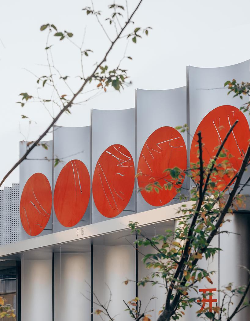 Кафе On-Site стоит в плотной городской застройке. Рядом ресторан, где постоянно жарят мясо — запахи, шум, толпа. Вместо обычного остекления архитекторы Аptdotapt собрали передний фасад из пяти полых полуцилиндров. Они стоят в ряд и образуют полузакрытую зону перед входом.