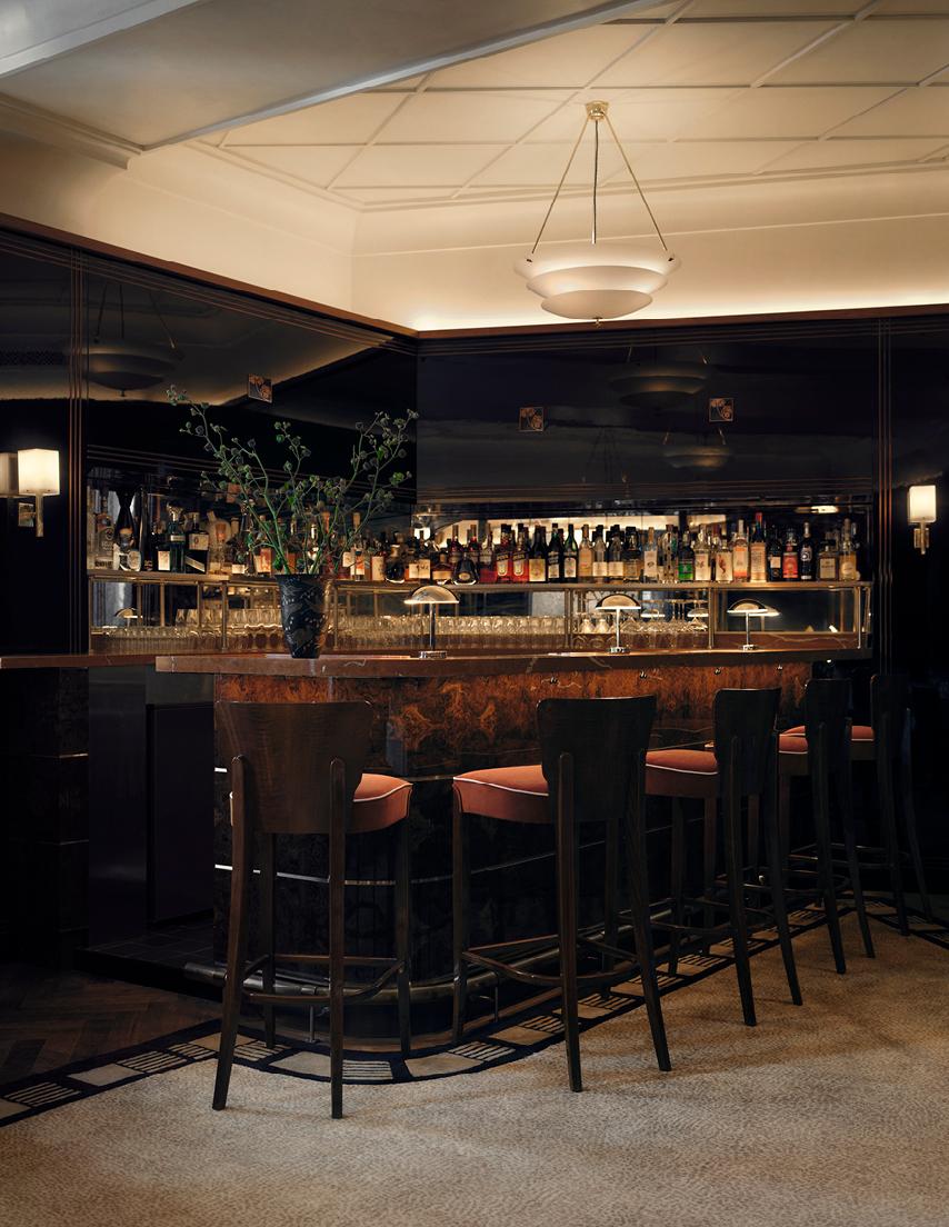 Интерьер от Studio Lazaro — это игра текстур и материалов: потолок из тростника, пол из тропического мрамора, струящийся велюр, обои House of Hackney и Pierre Frey. Бар в центре заведения организует пространство, разделяя шумный главный зал и более камерную, почти секретную зону.