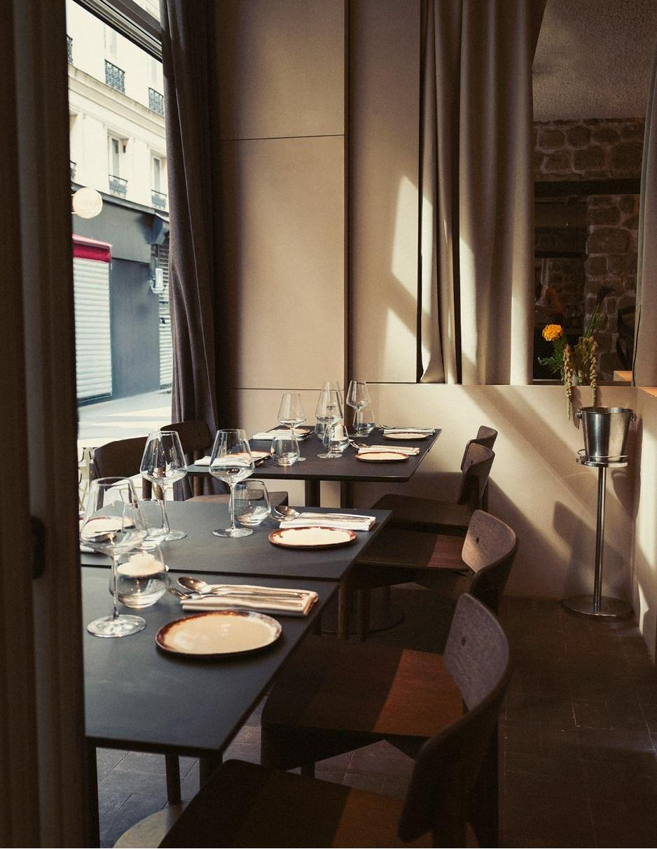 Этот уютный винный бар ставит во главу угла общение и вкус. Всего 10 мест у стойки и около тридцати — в зале. Дуэт основателей предлагает сезонную кухню, изысканную, но с ноткой кажущейся простоты.
