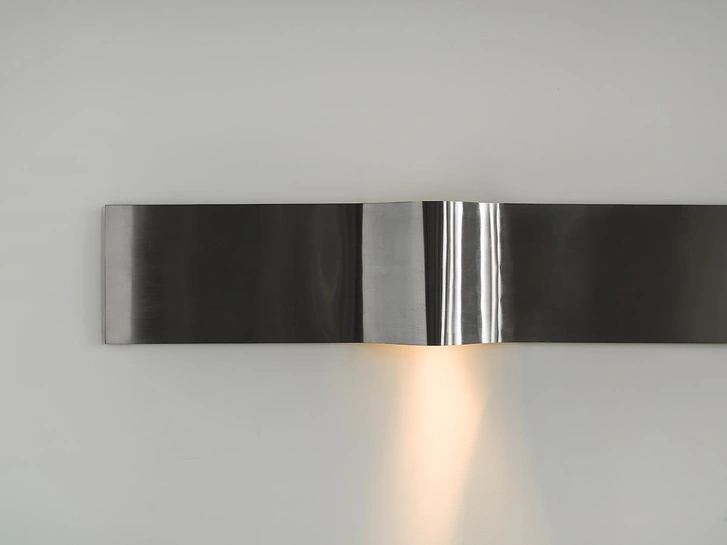 Самый необычный и выразительный элемент — зеркальная лента. Она не работает как декор в привычном смысле, а усиливает свет и добавляет глубину, оставаясь при этом почти незаметной. Декор сведен к минимуму и носит функциональный характер — это часть архитектуры, а не отдельный слой.