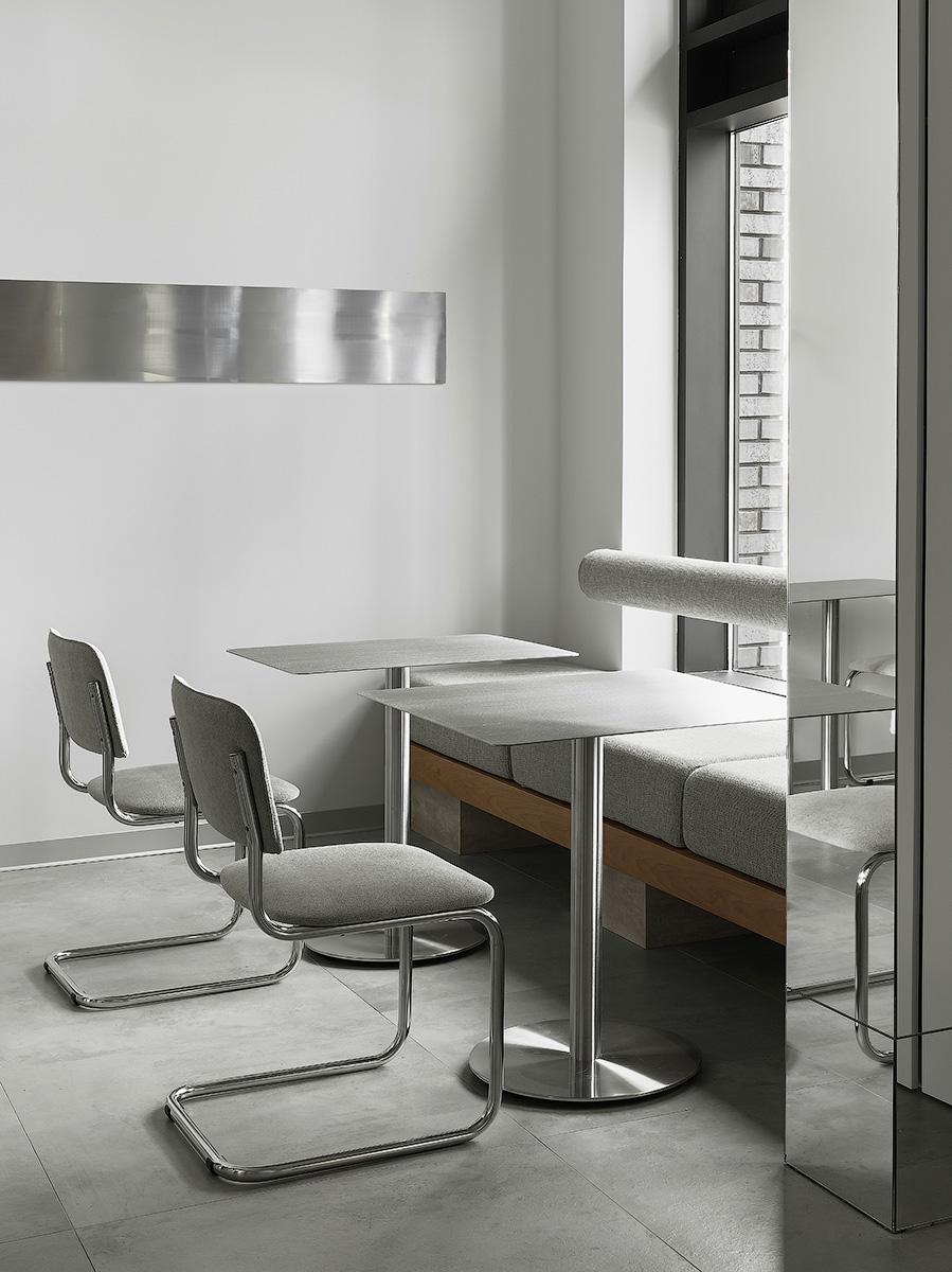 Известно, что перегруженный интерьер снижает качества восприятия и концентрацию внимания. Поэтому все сфокусировано на трех основных акцентах: светлые стены — как чистый холст, а дерево и металл — основные материалы, из которых сделана мебель. Простая геометрия, ровные плоскости и монохромная палитра формируют нейтральный фон, а натуральные материалы делают пространство фактурным без декоративной избыточности. Открытая планировка и отражающие поверхности придают объем, а мягкое, равномерное освещение подчеркивает спокойный характер интерьера и акцентирует внимание на деталях.