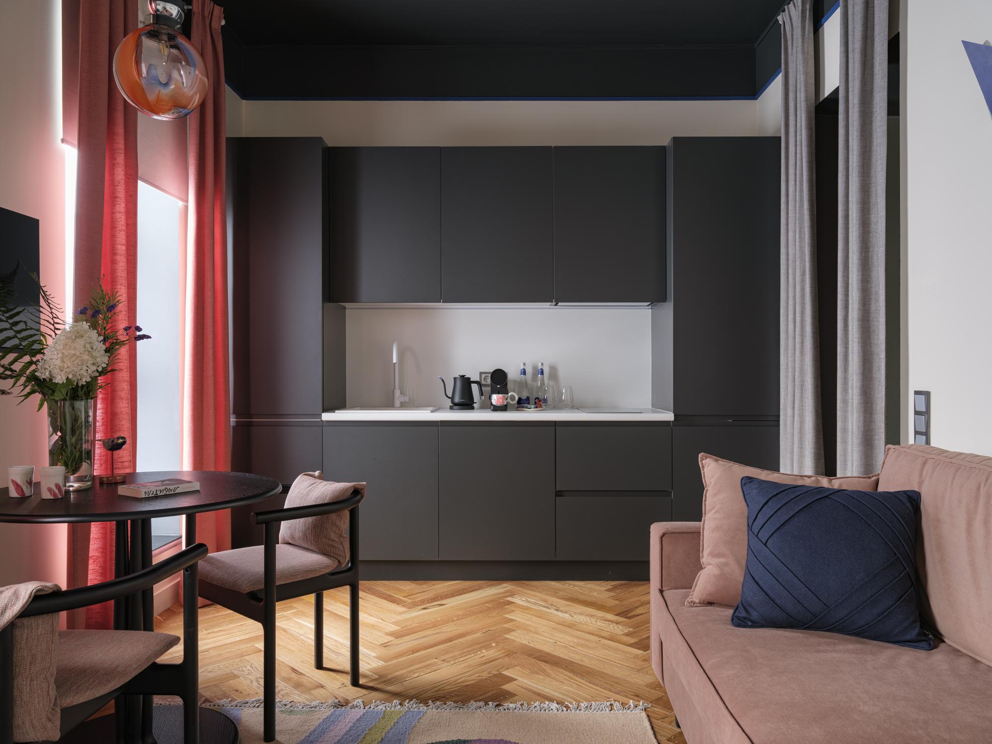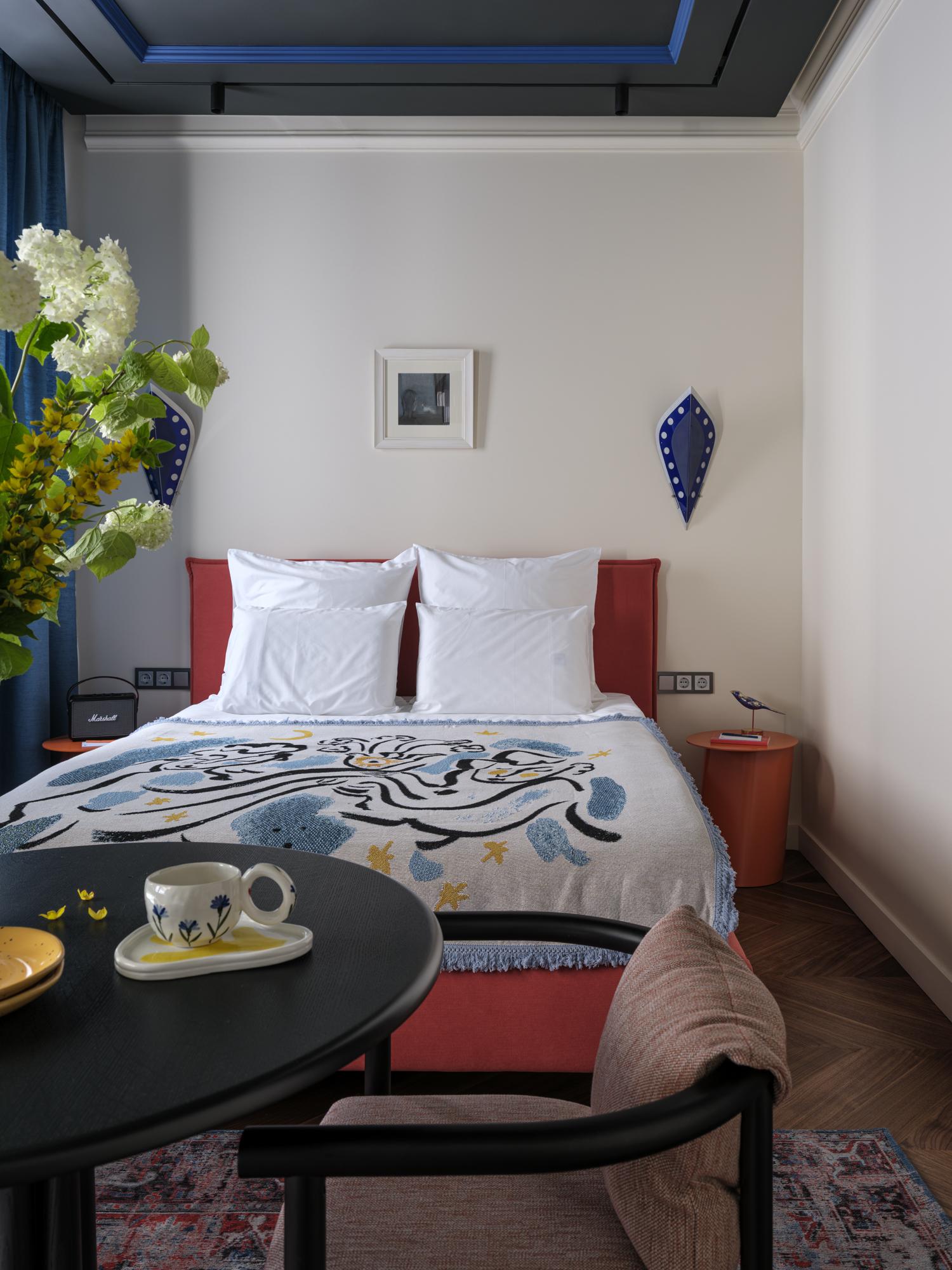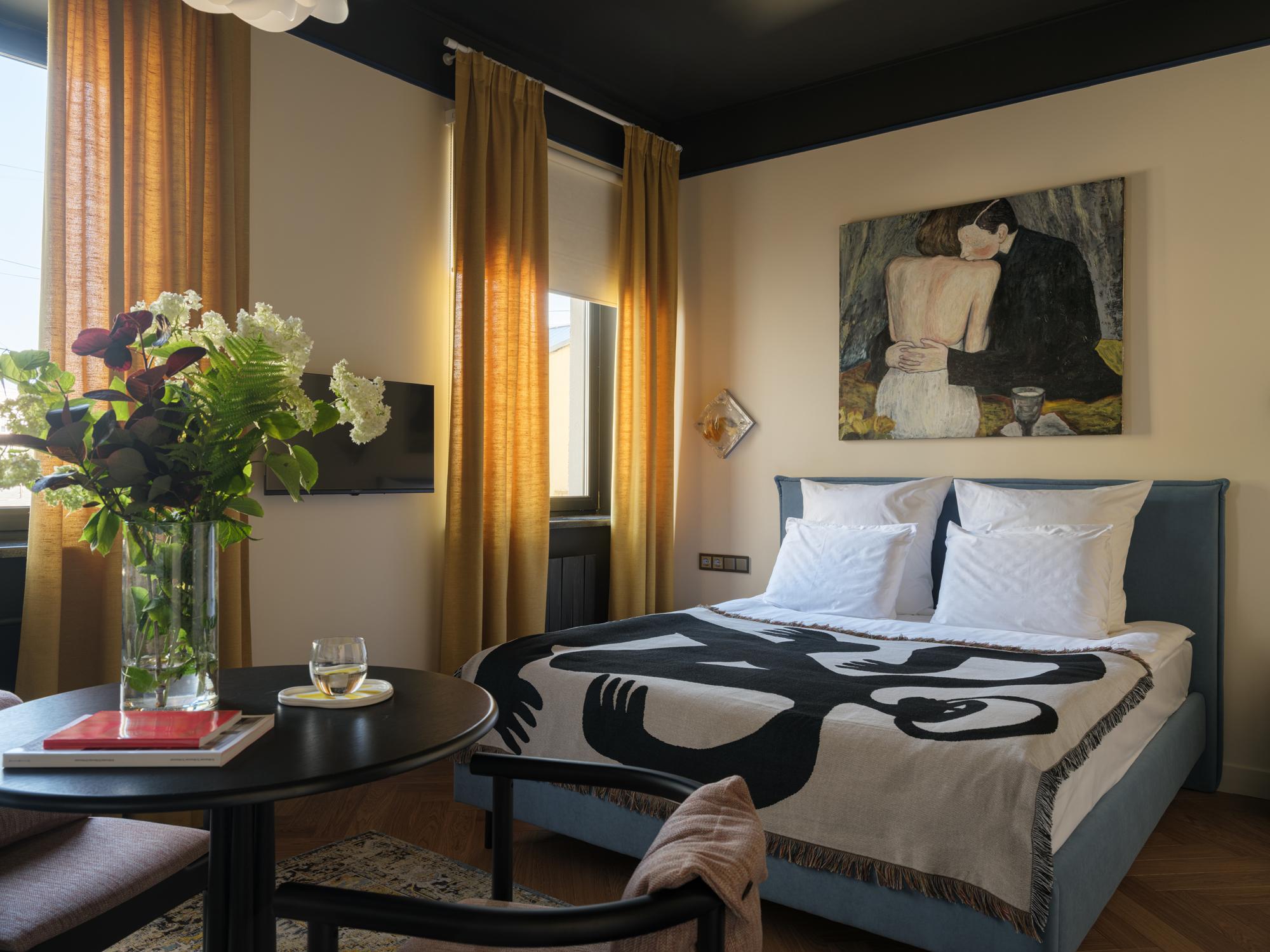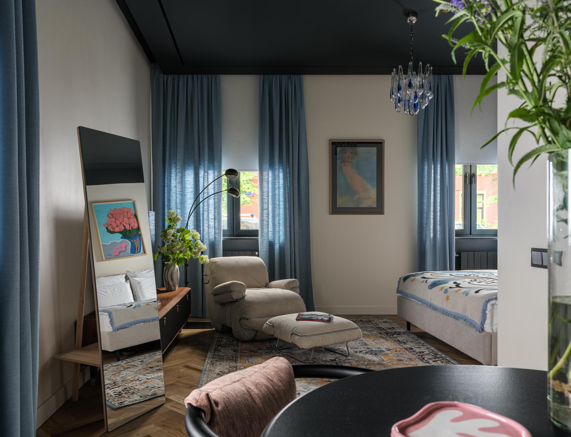Концепция апартаментов предполагает не просто красивые интерьеры. Это продуманные до мелочей пространства с местными брендами мебели, авторским текстилем и атмосферными ароматами. Декоратор Юлия Голавская, работавшая над апартаментами, наполнила интерьеры винтажным находками, современным искусством и теплом.