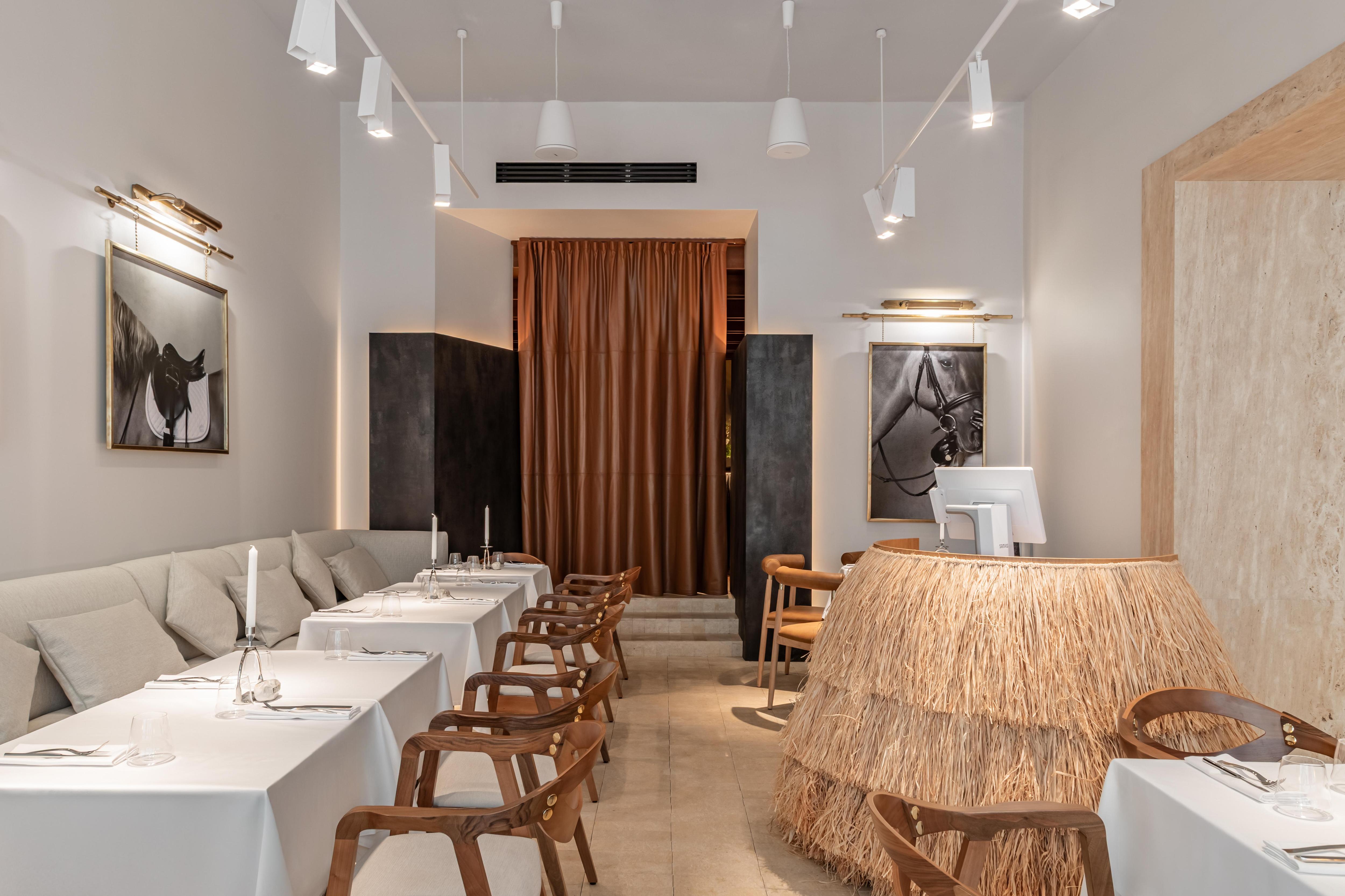 Наши заказчики — Анна и Кирилл Егоровы — обожают конный спорт. Свой новый ресторан владельцы назвали Savras, в честь знаменитой вятской породы, которую они возрождают. Заведение находится на первом этаже знаменитого «Египетского дома» на Большой Дмитровке, так что все аксессуары подбирали бережно: с одной стороны, они аккуратно отсылают к истории здания, с другой — создают ненавязчивую атмосферу старинной конюшни. При всем этом интерьер выглядит современно.