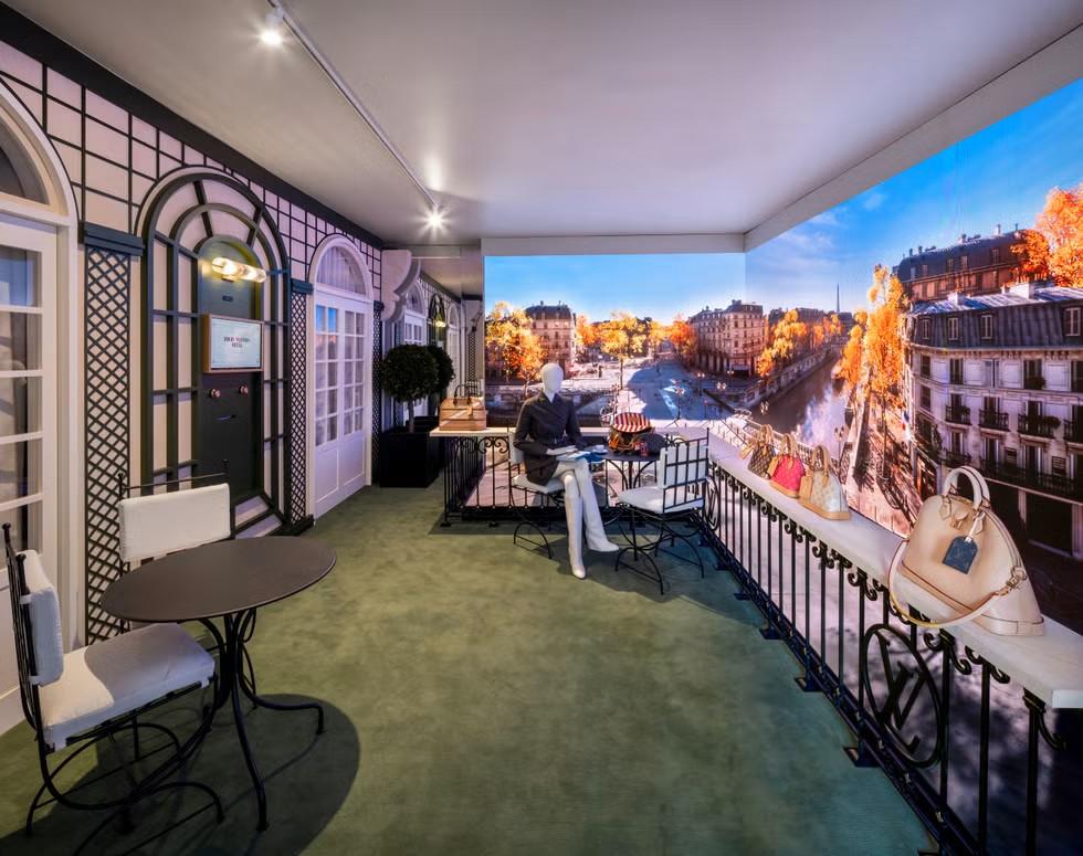 Гости начинают осмотр с «Лобби Keepall». Эта комната посвящена дорожной сумке Keepall, впервые представленной в 1930 году. Далее посетители попадают в «Спортзал Neverfull». Пространство посвящено легкой вместительной сумке-тоуту, которая стала популярным выбором для работы и путешествий после релиза в 2007 году. Здесь также можно сфотографироваться на фоне стойки с гантелями из зеркал.